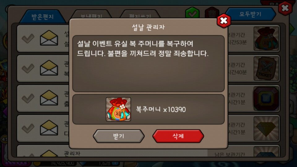 복주머니10000개 복구!