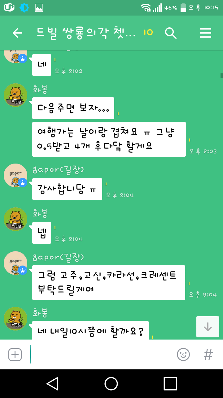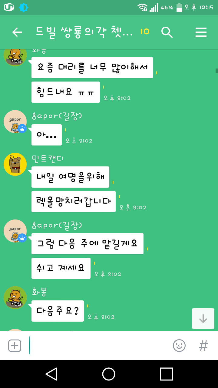 저희 단톡 입니다 gapor님이 테디와 마룡을 뺏겼고.....화봉이 다 가져갔습니다