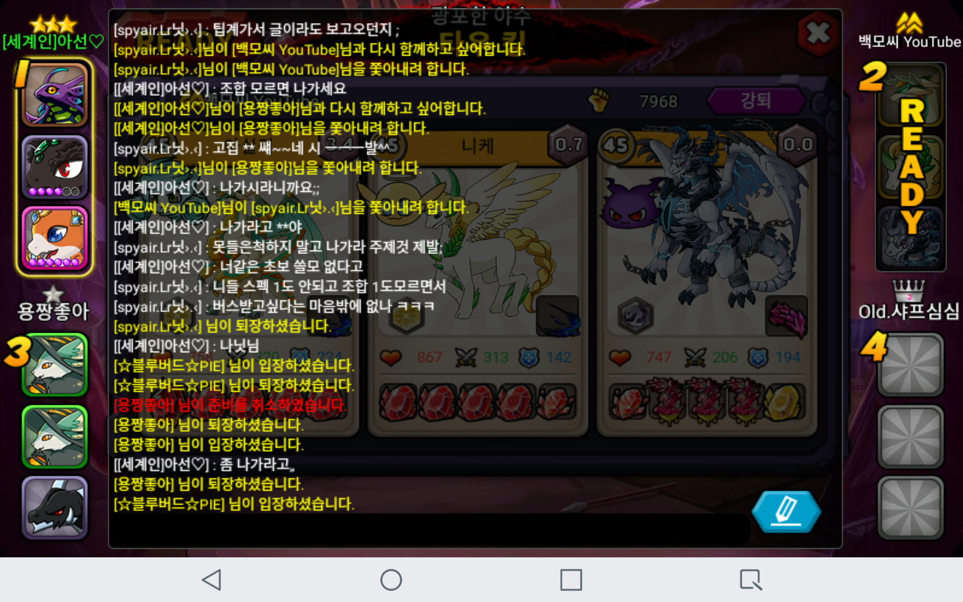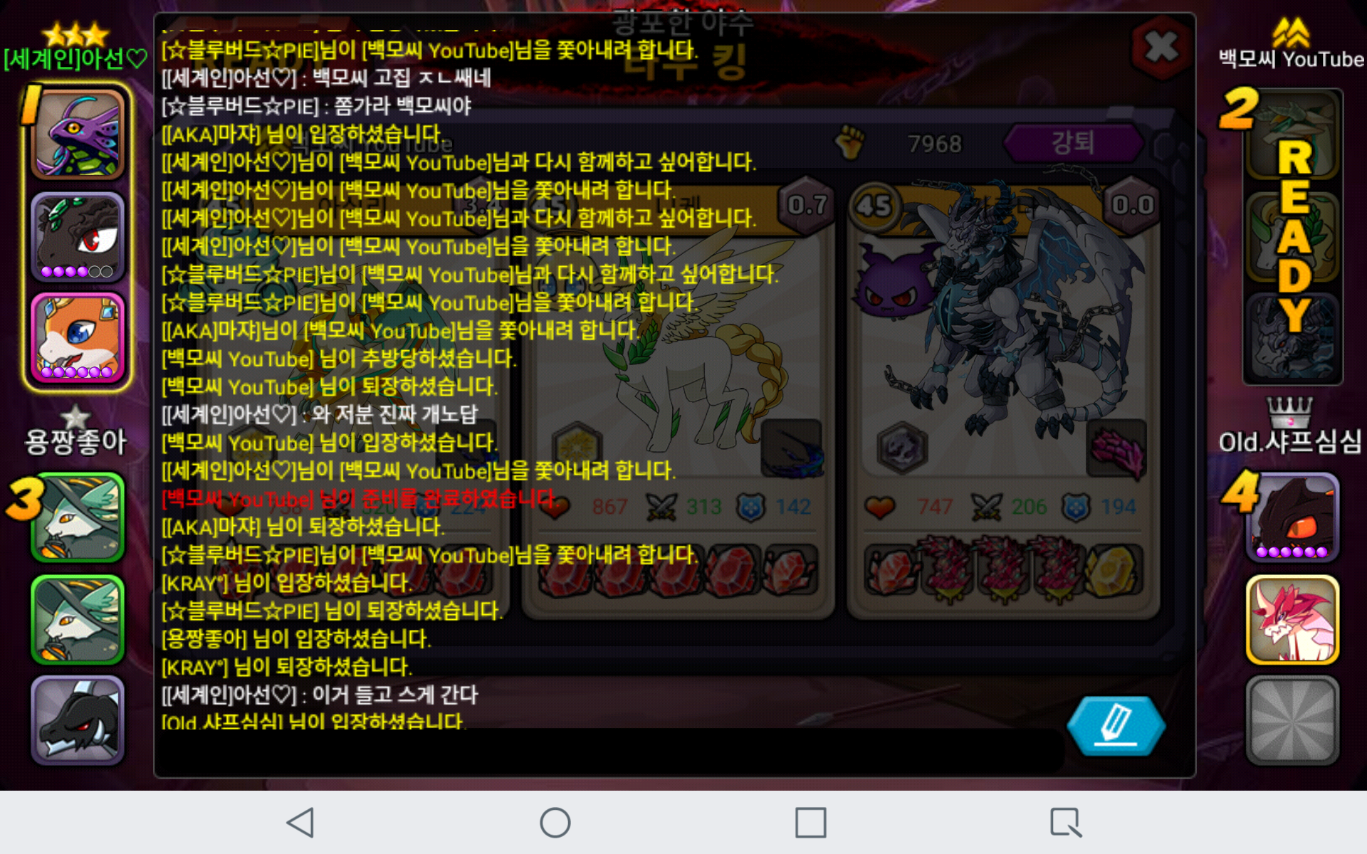 욕해도 말을 듣지 않네요. 그래서 어렵게 강퇴를 시키고 플레이어 기다리고 있는데 다시 들어와서 자리를 꿰차고 앉아있네요;; 이 상황이 일어나기 전에 aka마쟈님도 저랑 동시에 똑같은 일이 있었는데 마쟈님 빡쳐서 나가고 나닛님이랑 욕하면서 백모씨님 쫓아내려고 했네요