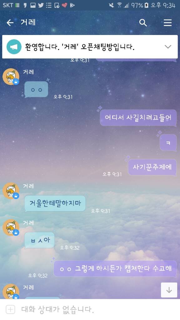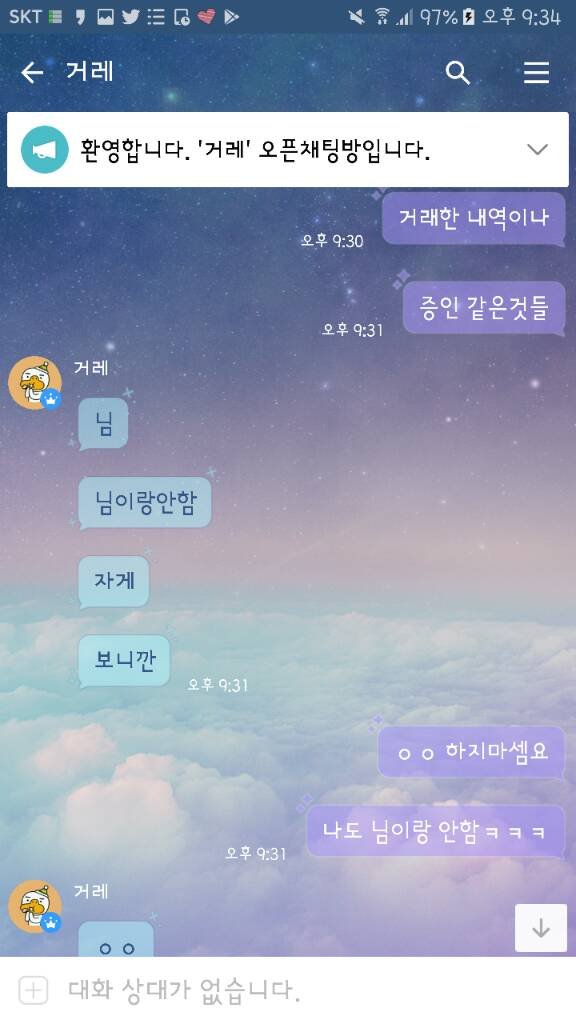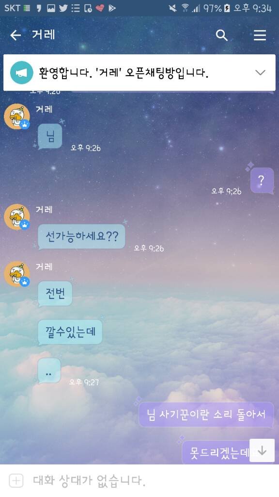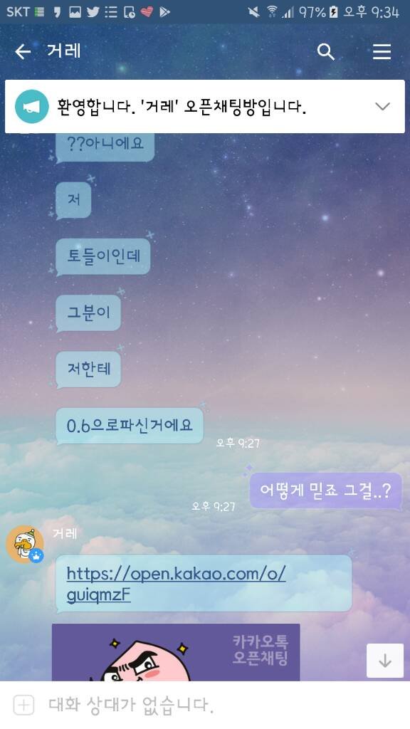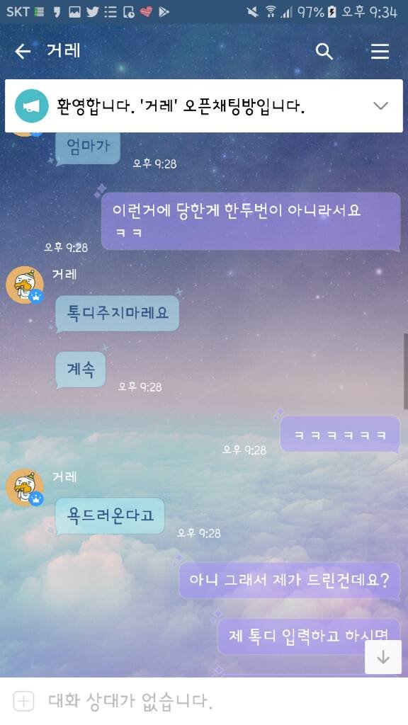 방금 전 디망을 0.5로 사신대서 제가 먼저 카톡디를 드렸더니 갑자기 옾챗링크를 주셨고, 옾챗링크에 들어가서 거게 인증까지 해드렸건만 다짜고짜 선 가능하세요? 라고 하였습니다. 원래 사기꾼이란 말이 돌아서 사기꾼 아니냐고 물어봤더니 아니라고 그랬고 자신이 토들이 라는 사람이며 계정을 구매했고, 엄마가 주지 말랬다면서 톡디를 안줬다고 그랬습니다. 그래서 제가 톡디는 제가 줬는데요? 저한테 연락주시면 모를텐데 했더니 그래도 알 수 있는 방법이 있다며 안된다고 하였고, 종이 거래를 많이 했다고 하시길래 신용 인증이나 증인들 불러오라고 했더니 안해주셔서 자게에 글을 썼더니 보자마자 님이랑 안함 이러셨습니다. 그래서 ㅇㅇ 나도 안함 어디서 사기를 치려고들어 라고 했더니 다짜고짜 거울 보고 말하지 말라는 둥, 애.미총맞아뒤졌다는 등의 패드립을 일삼았습니다 ^^&