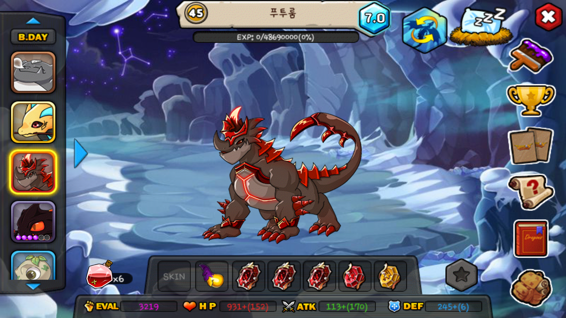 드래곤:플래그너ss 21렙 7.0,패트드래곤초월 20렙0.0(7.0가능),모리카드래곤초월21렙6.3(7.0가능),푸투룸초월 45렙7.0,