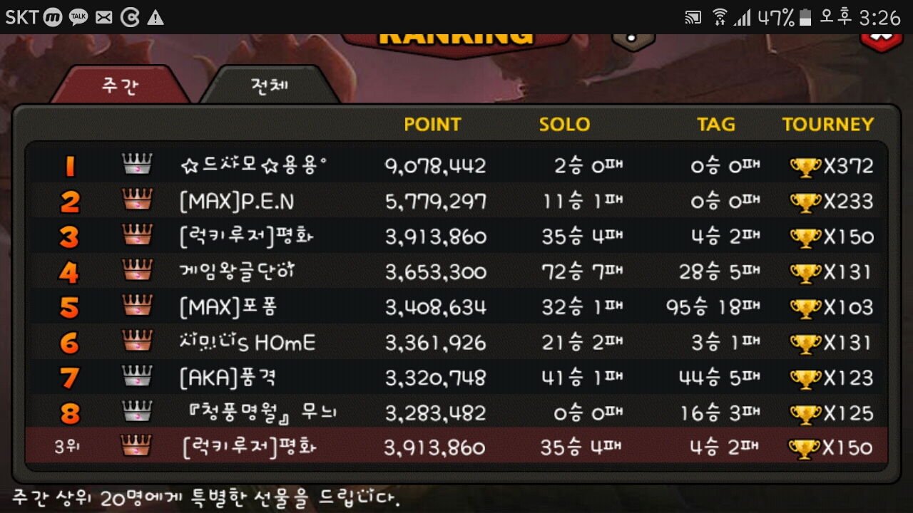 주간랭킹보상언제오나요?
