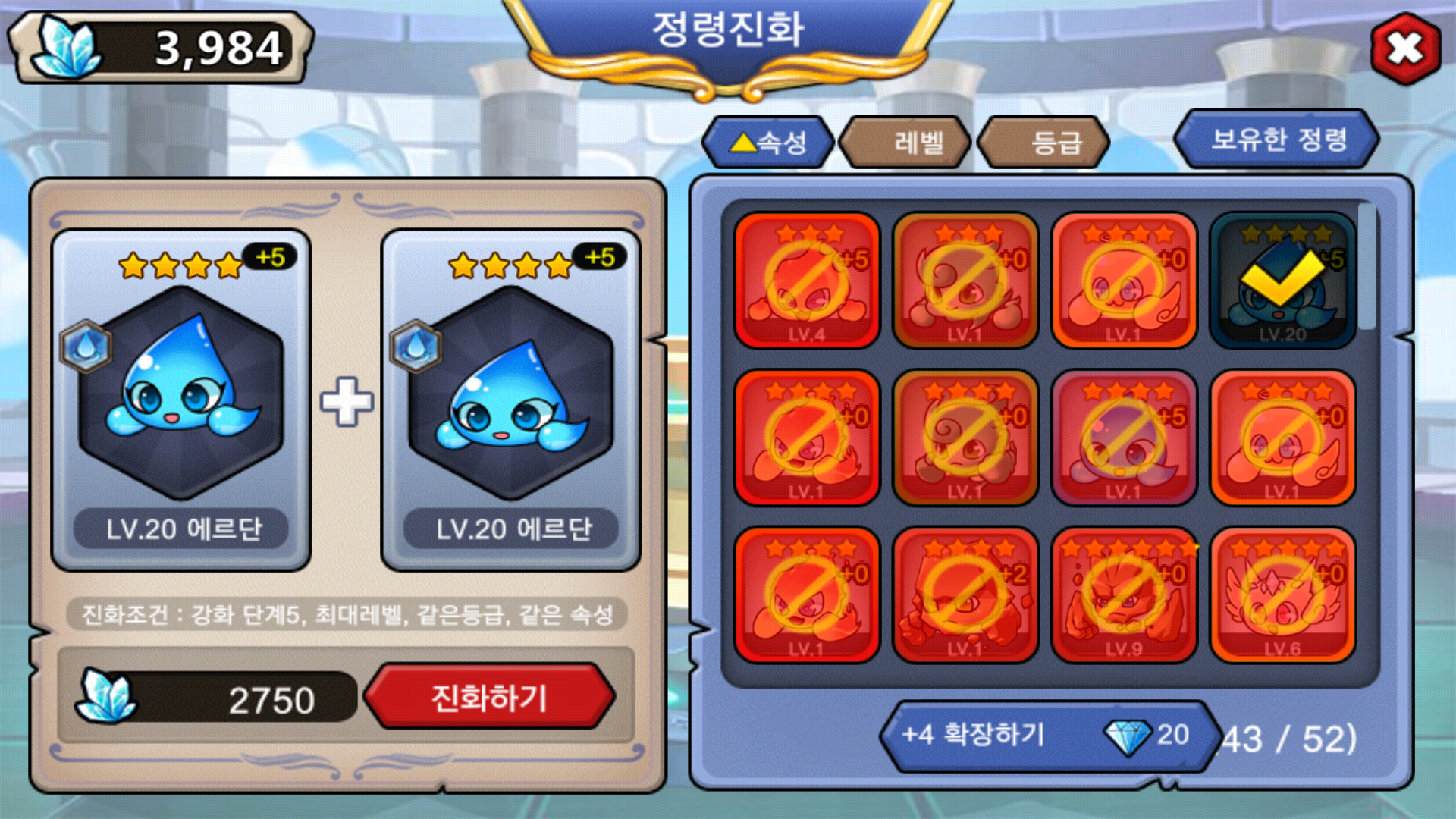 물속성 진화 했어요 피공 공방옵 진화했습니다 참고바래요