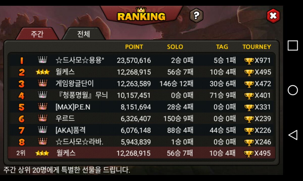 주랭 2위 달성!