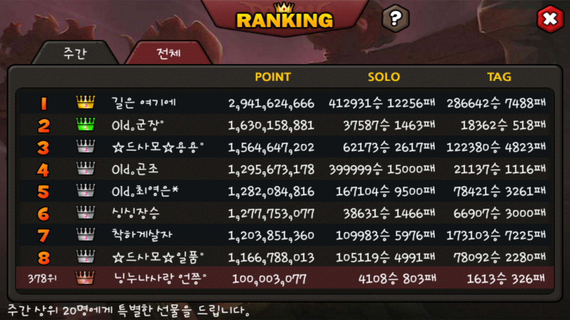 +랭킹 커트라인 입니당!!