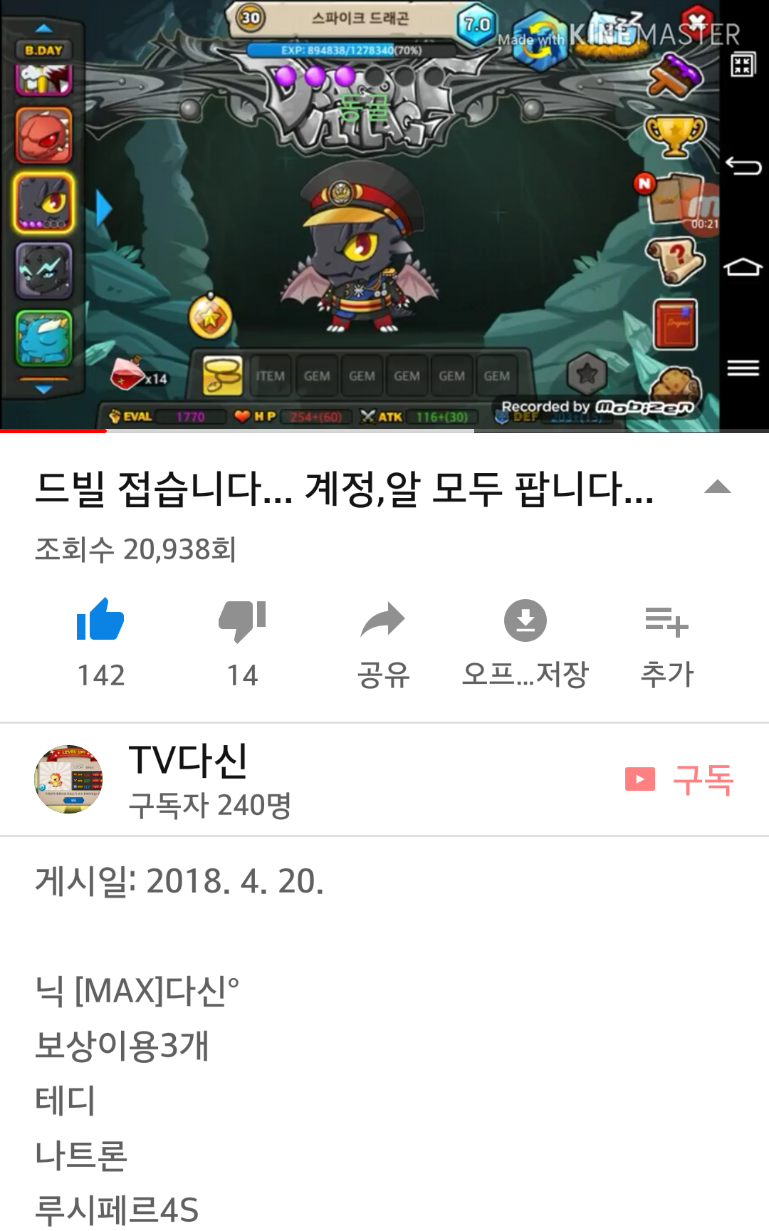 여기있는 모든용(모리카제외)모두 7.0입니다! 젬도 좋고요!초보다 분들한테 딱 좋습니다!!