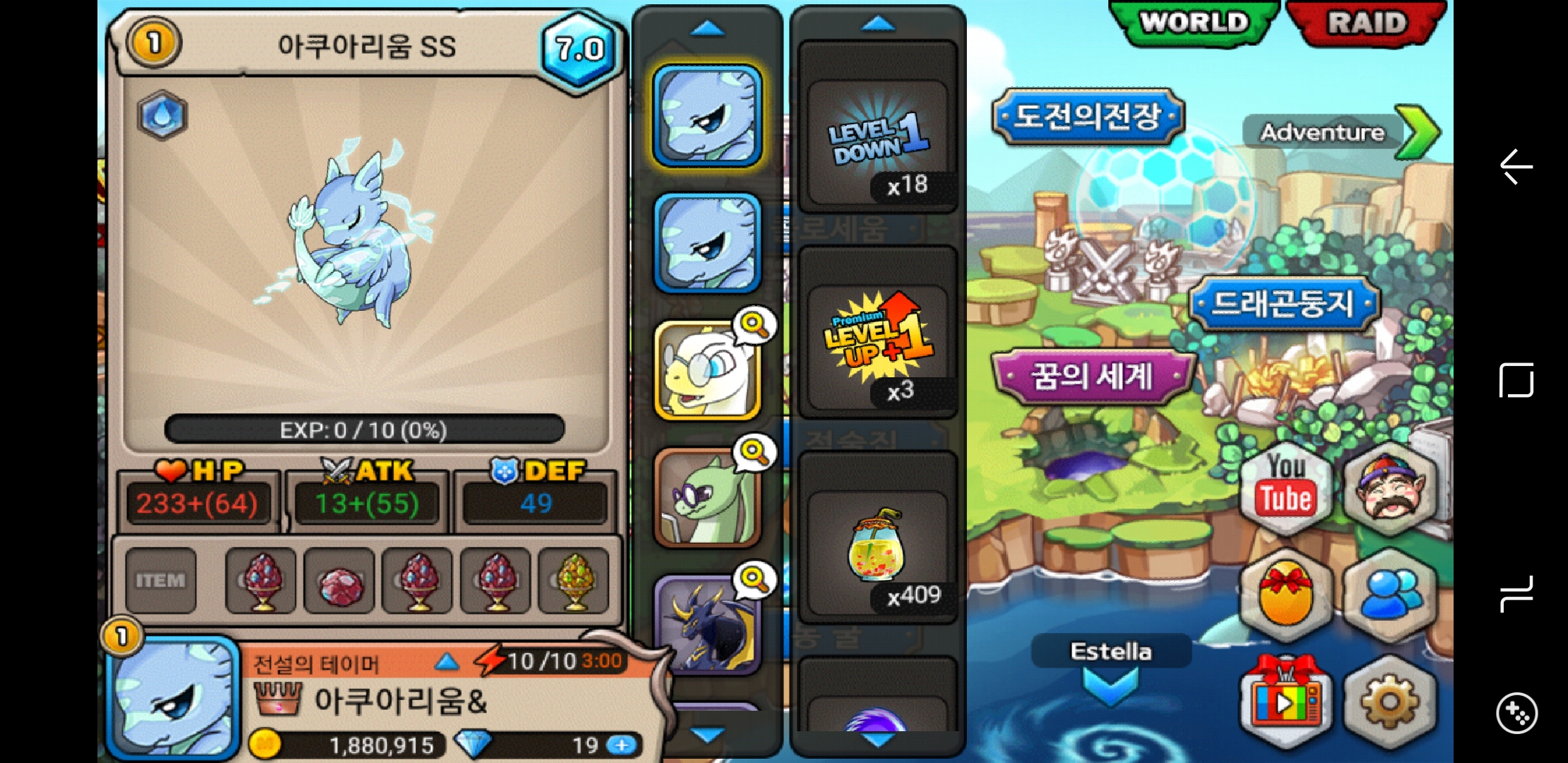 이제 키우고 달정수23개 블랙정수30개만더 모으면 됩네요... 콜로21층에서 만나요 ㅎㄹㅎㄹㅎㄹ