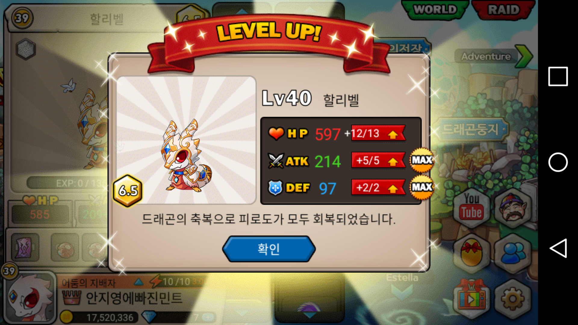 의외로 트맥이 잘떠줘서 마지막에 피여유를 팍팍썼더니 각성을 하고도 피여유가 2가 남았네요 아무튼 렙업 안먹는 용은 이게 5번째네요.. 힘들어요.. 45층은 진각이 마구 날뛰니 30층쯤에서 뵙도록 하죠