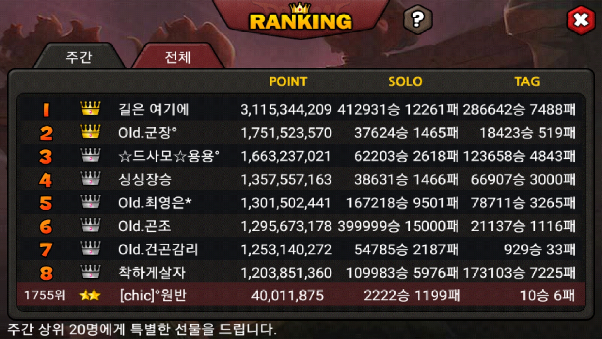 솔로 매치2222승 했네요