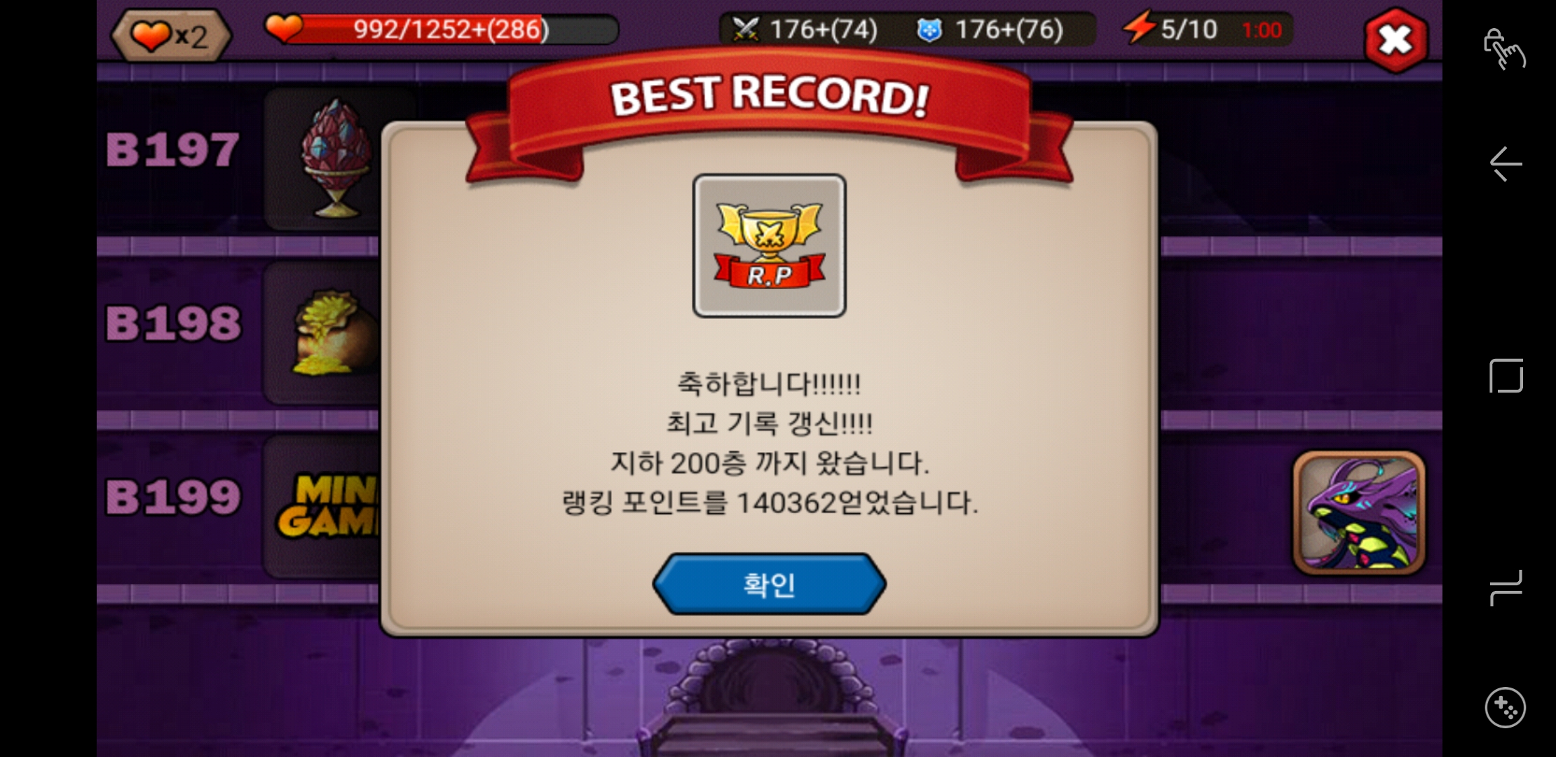 200층 가는데 데삭 하냐고요? NO. 이제 끽해야 무료부활 쓰면 쓰지 데삭 안하고 잘 갑니다.