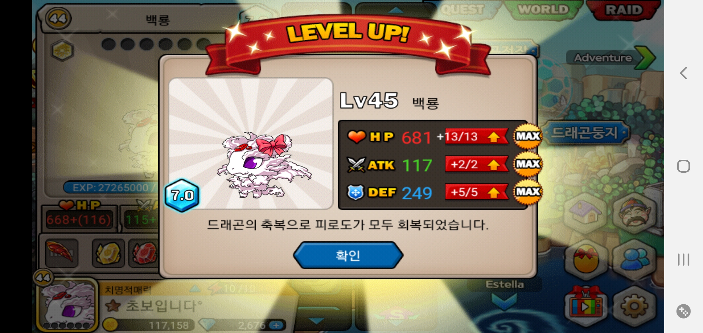 귀여운 백룡각성 드디어 만렙~!