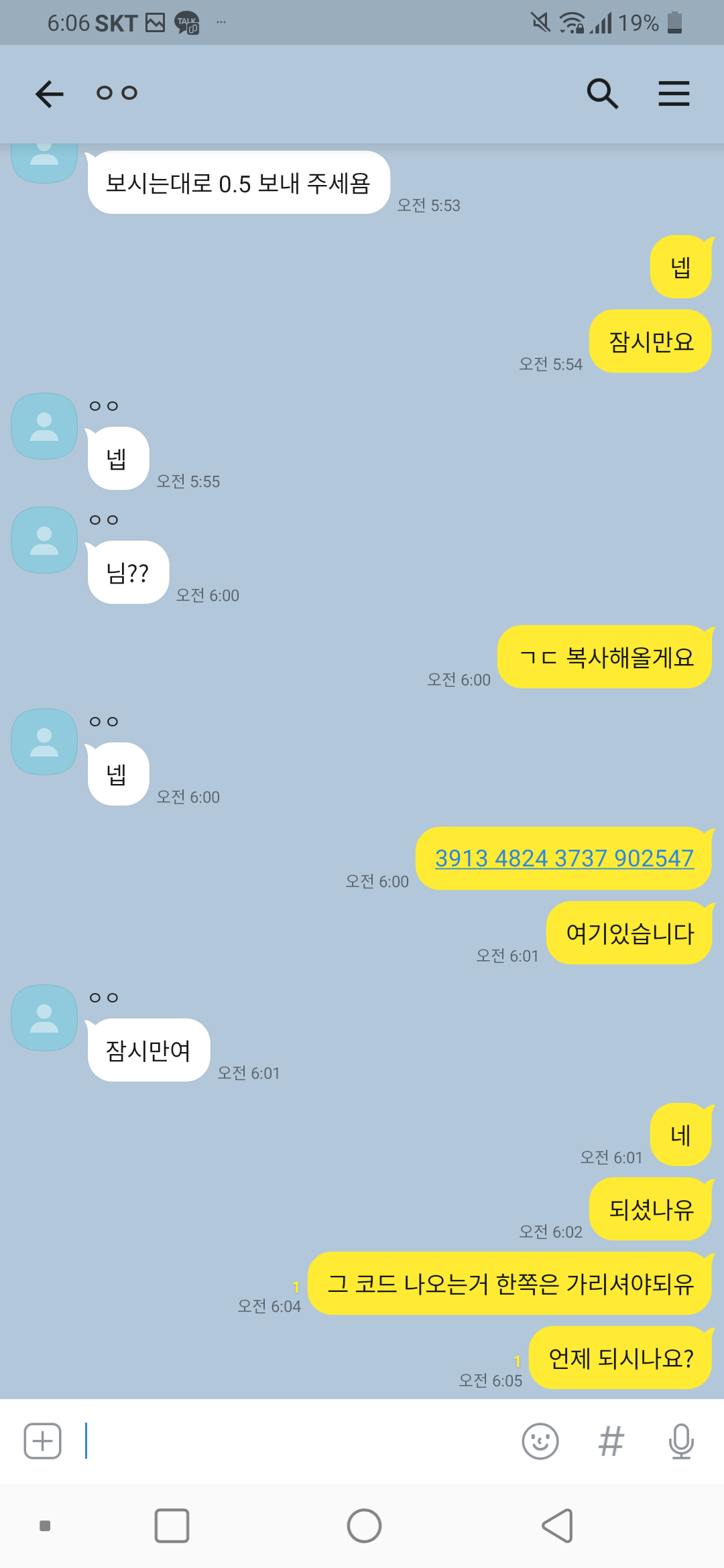 음 어제 복귀해서 지금 사기 당하네