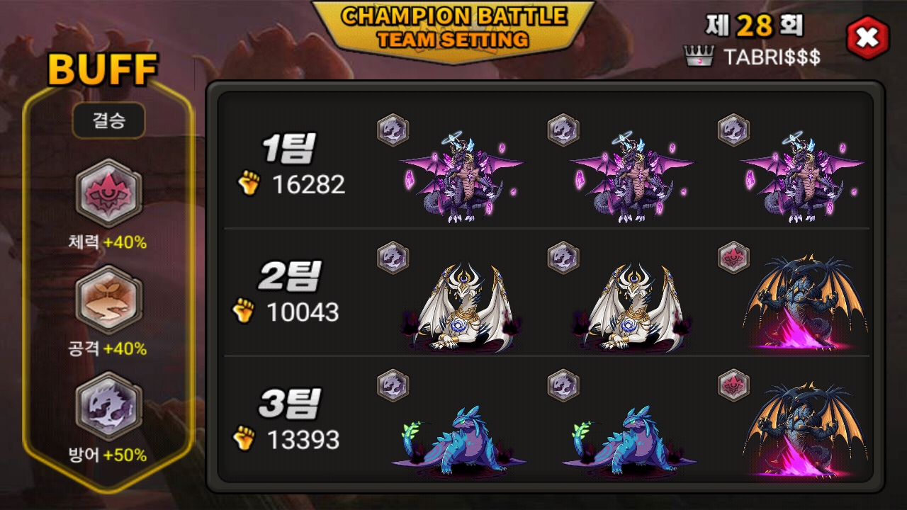 28회 차 챔피언 대전 우승 배치