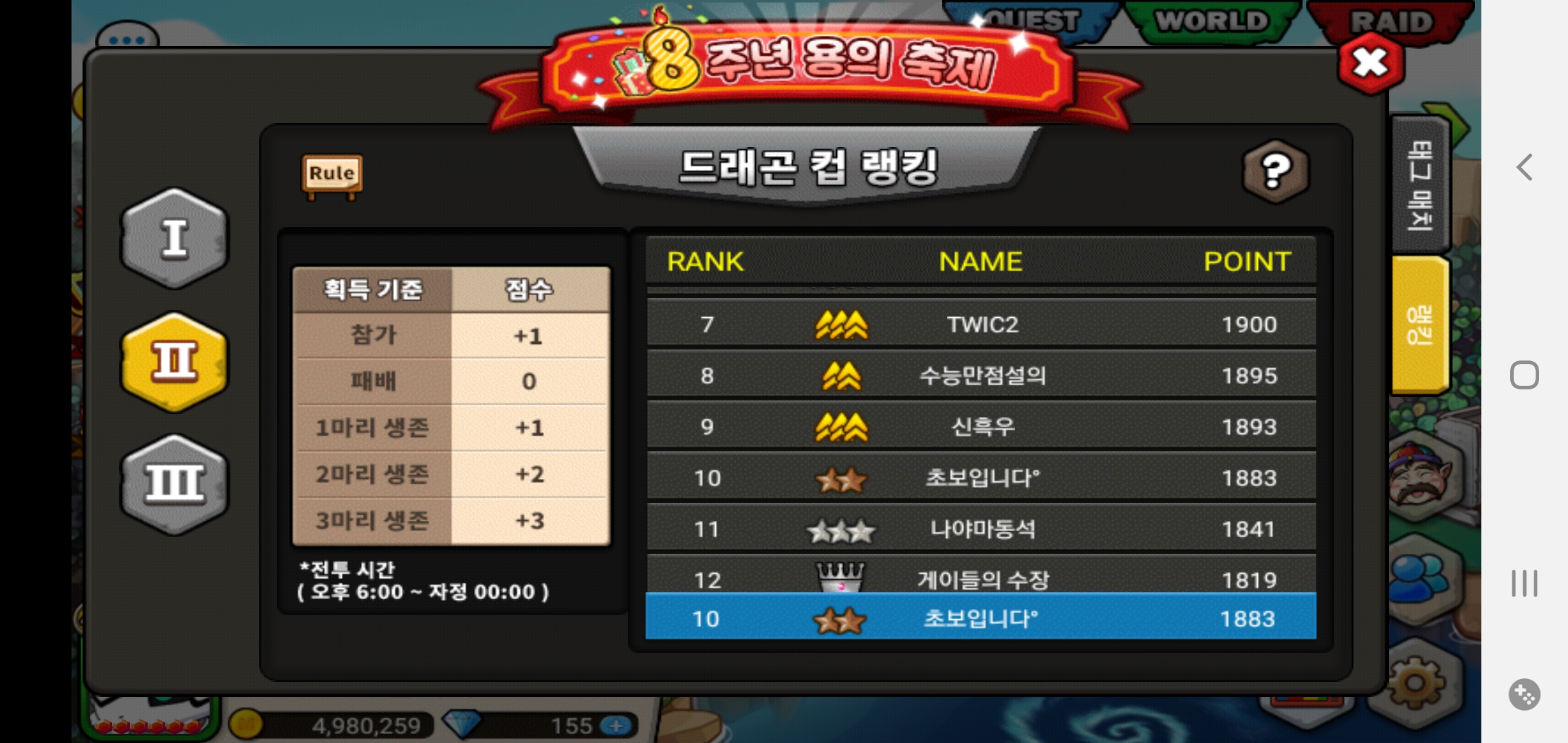 8주년 드래곤 컵 1일차 성적..