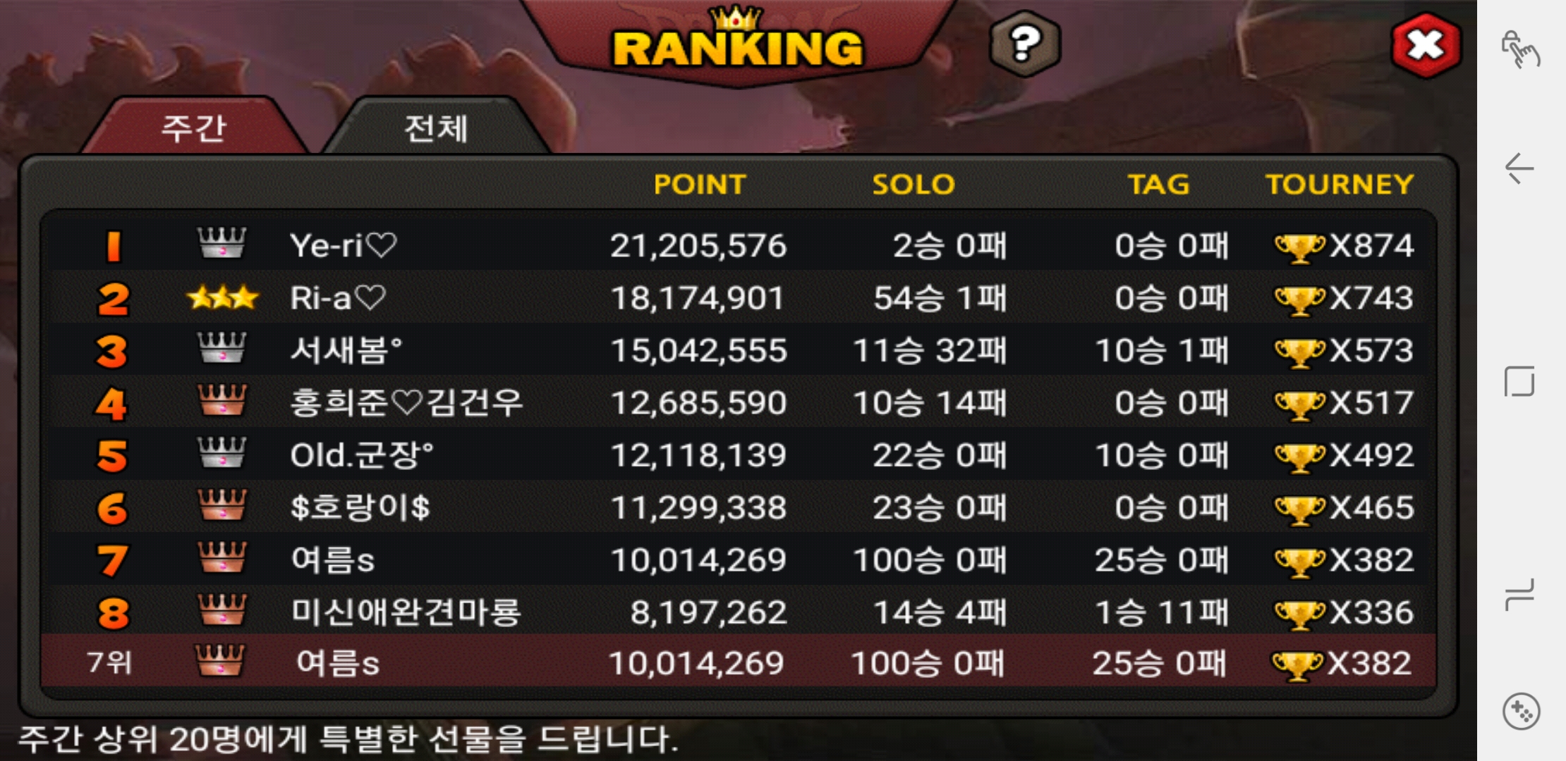 주간전적 깔-끔