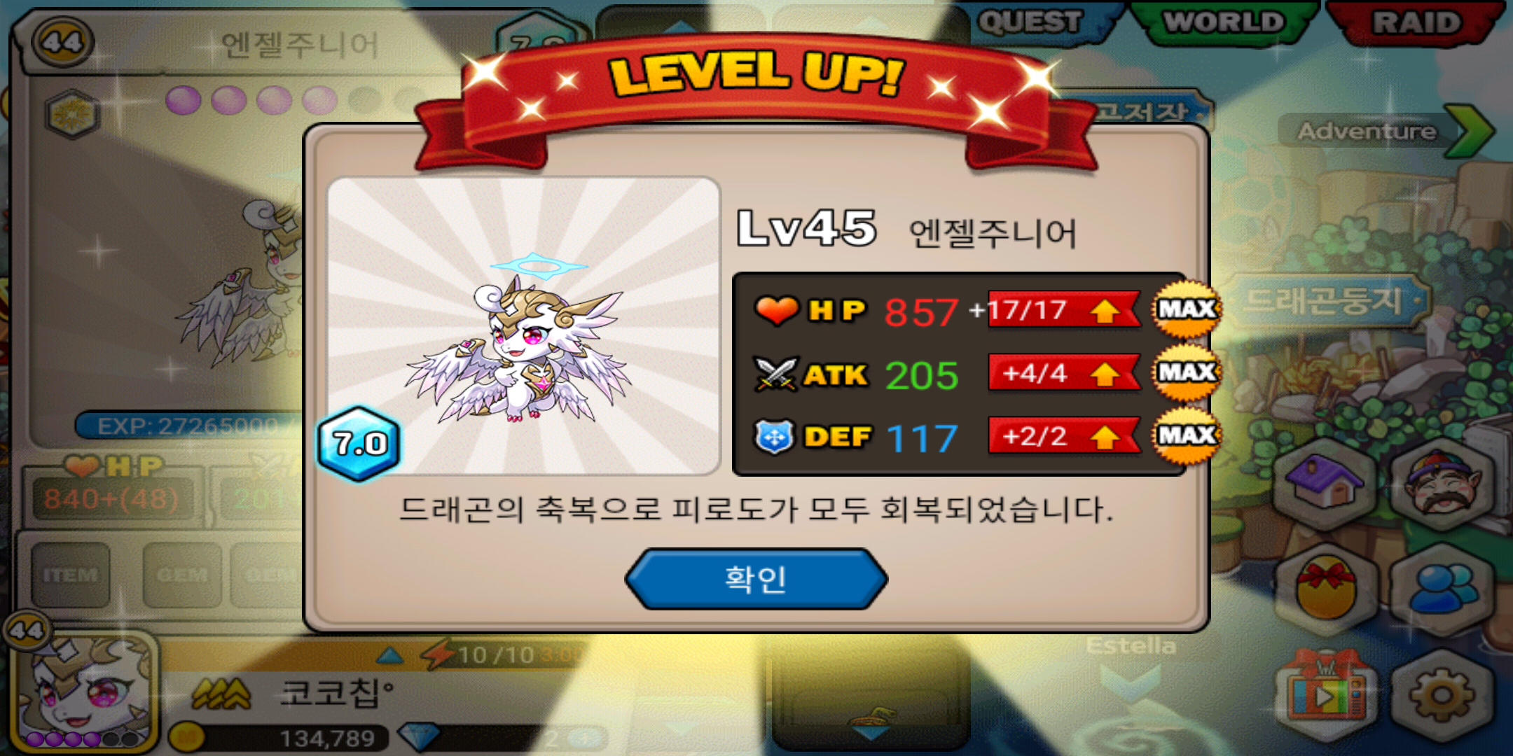 엔주 45렙 각성 완료! 첫번째 진각 예정!