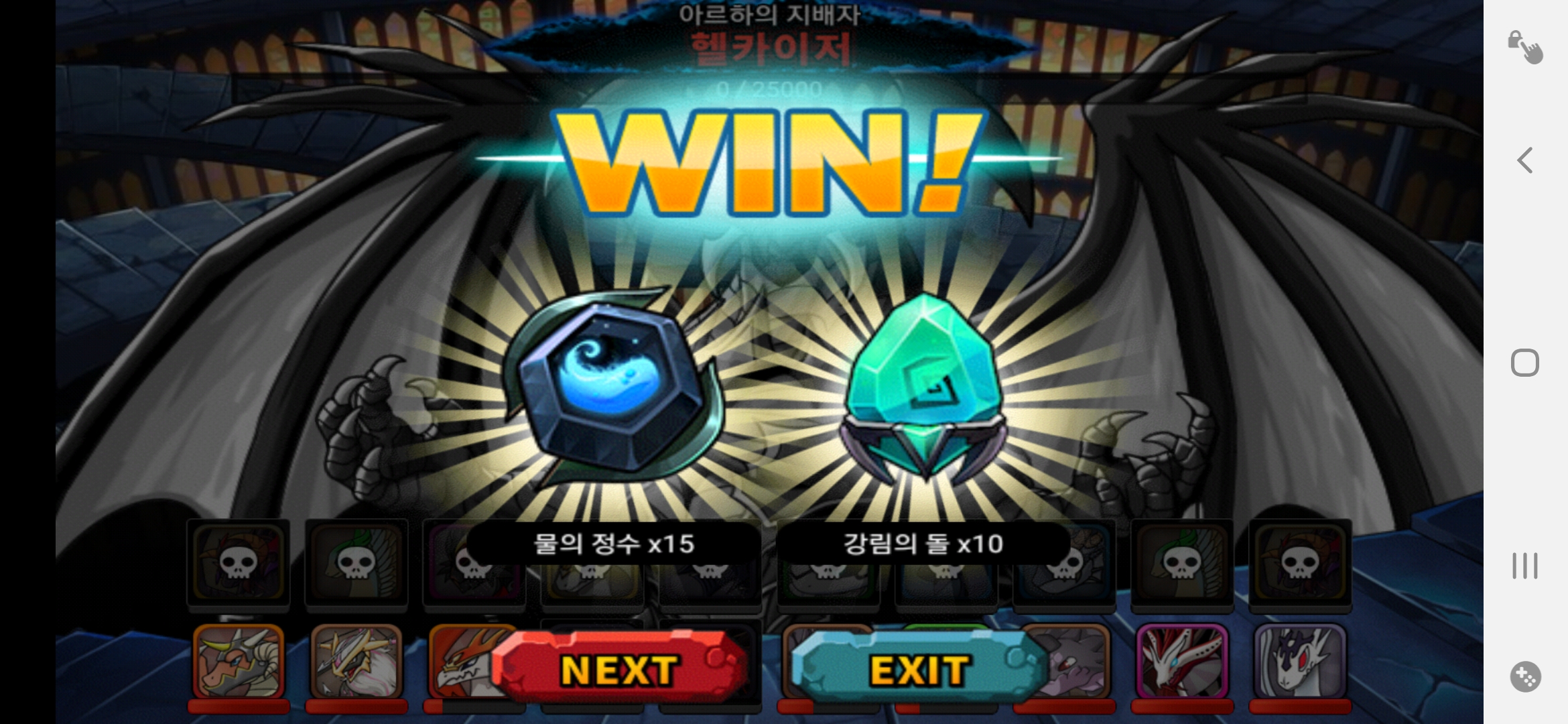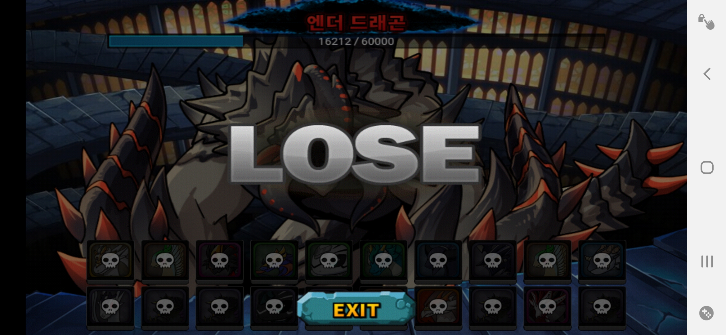 엔더도 한번 도전해봤는데 올 7물에다가 앞줄 바람 3마리 뒷줄 어둠 7마리 정도밖에 없어서 실패했네요 그래도 어둠애들이 딜 확실히 잘 넣는거 확인했으니 엔더도 나중에 도전해봐야겠습니다!