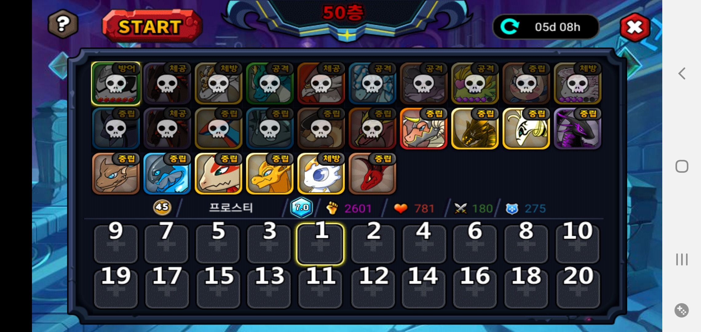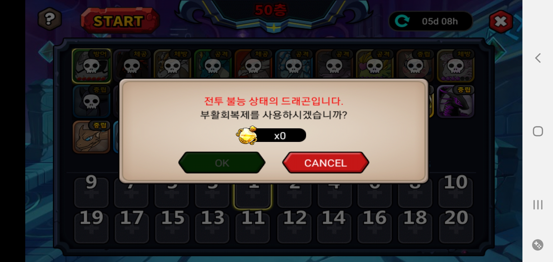 50층까진 어찌어찌 왔지만.......헬카를 이기기엔 스펙이 너무 딸리네요;;;