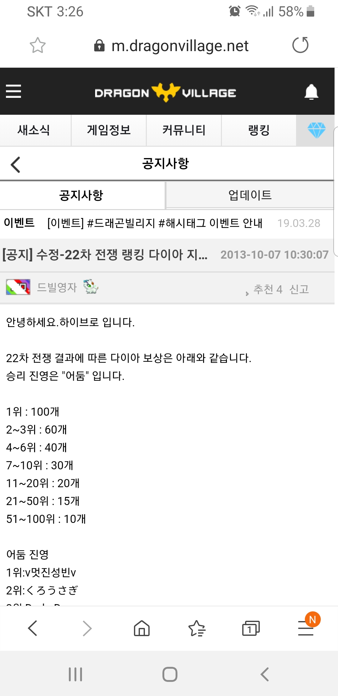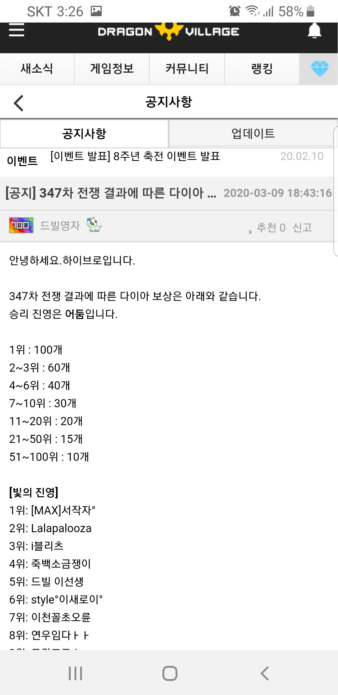 커뮤니티 > 스크린샷