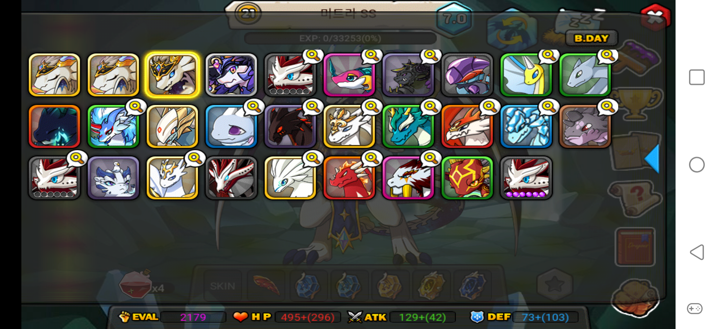 니케다랑 트와일라잇은 막스탯으로 키웠고(45)