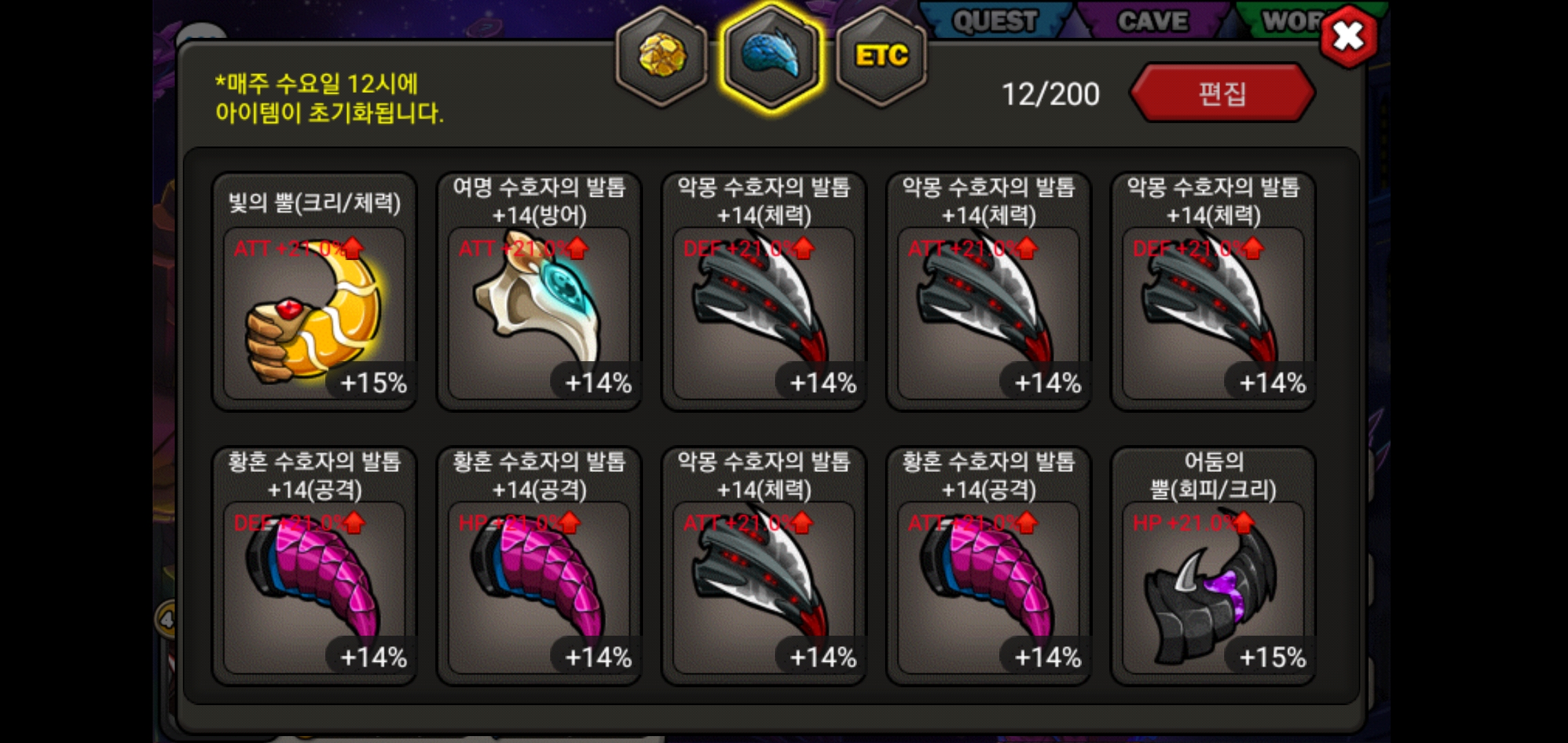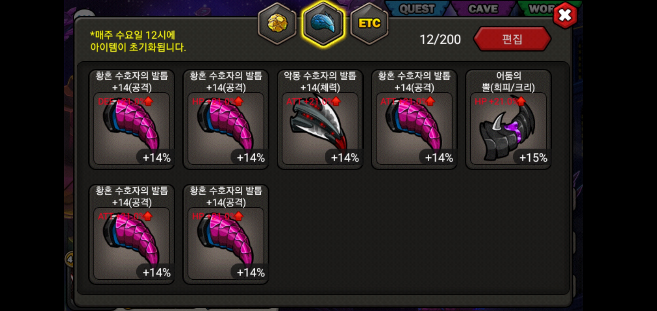 그래서 파밍으로 얻은 황발 2개랑 악발 2개도 껴주고