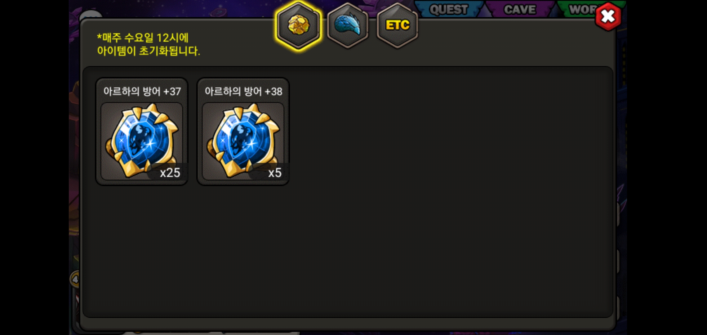 가방에 있는 체인첸 14퍼짜리 깃털 1개에 나머지는 노인첸 어둠뿔