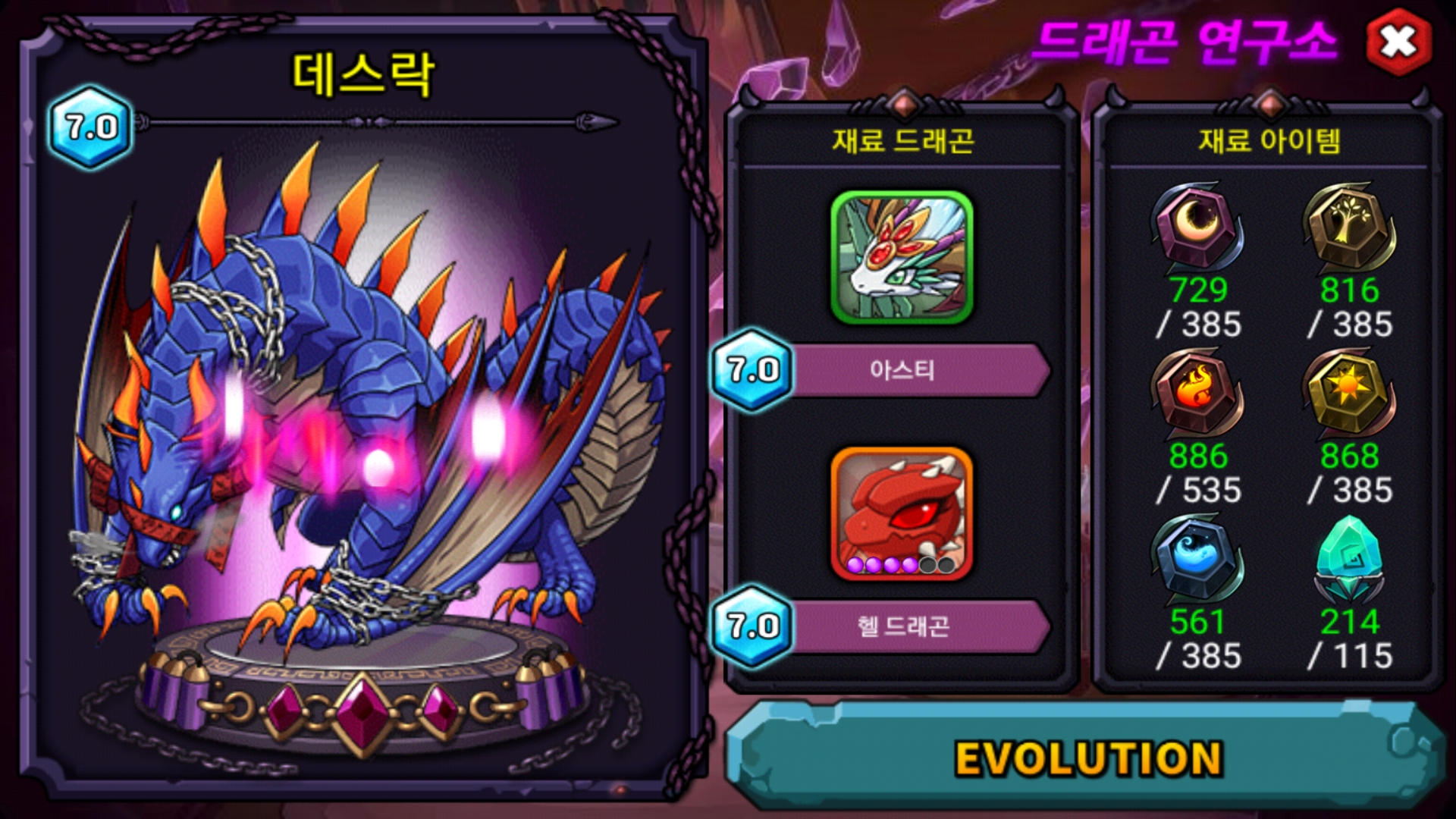 아스티는 잘 크던데 헬 드래곤이 진짜 헬이었죠...ㅠㅠㅠ