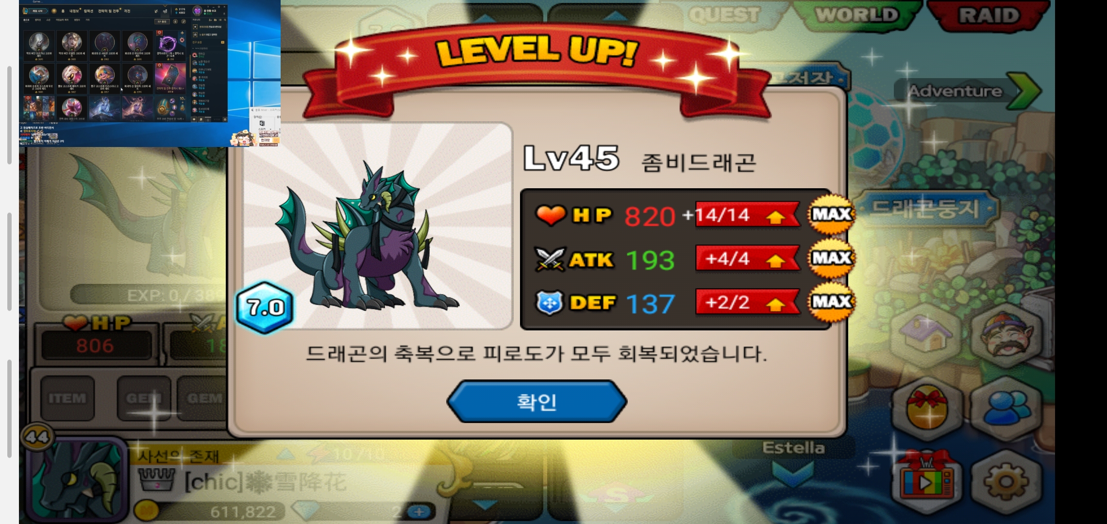 좀비곤~(전에 7.0안찍고 버린게 생각나서 새로 키웠다는 ㅋㅋ)
