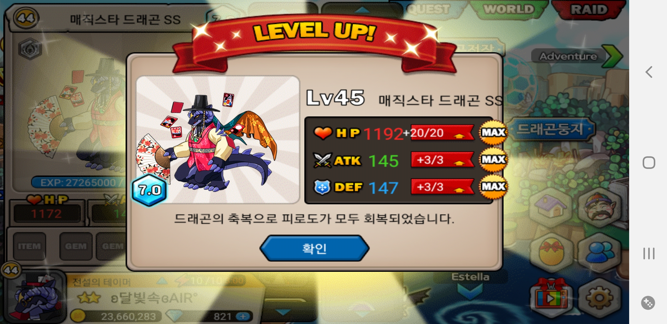 드디어 45렙달성(3일전에 달성했지만 귀찮아서 올리지 않음)