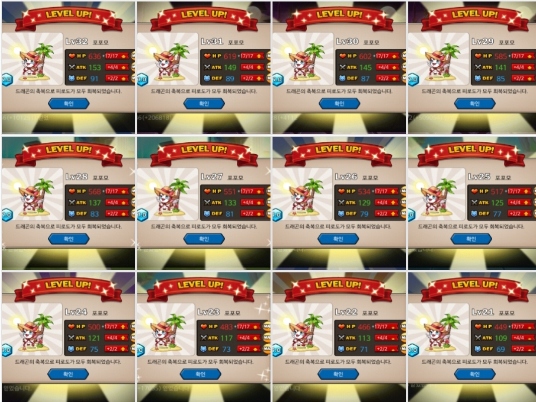 렙다 약240개정도 소모했네여