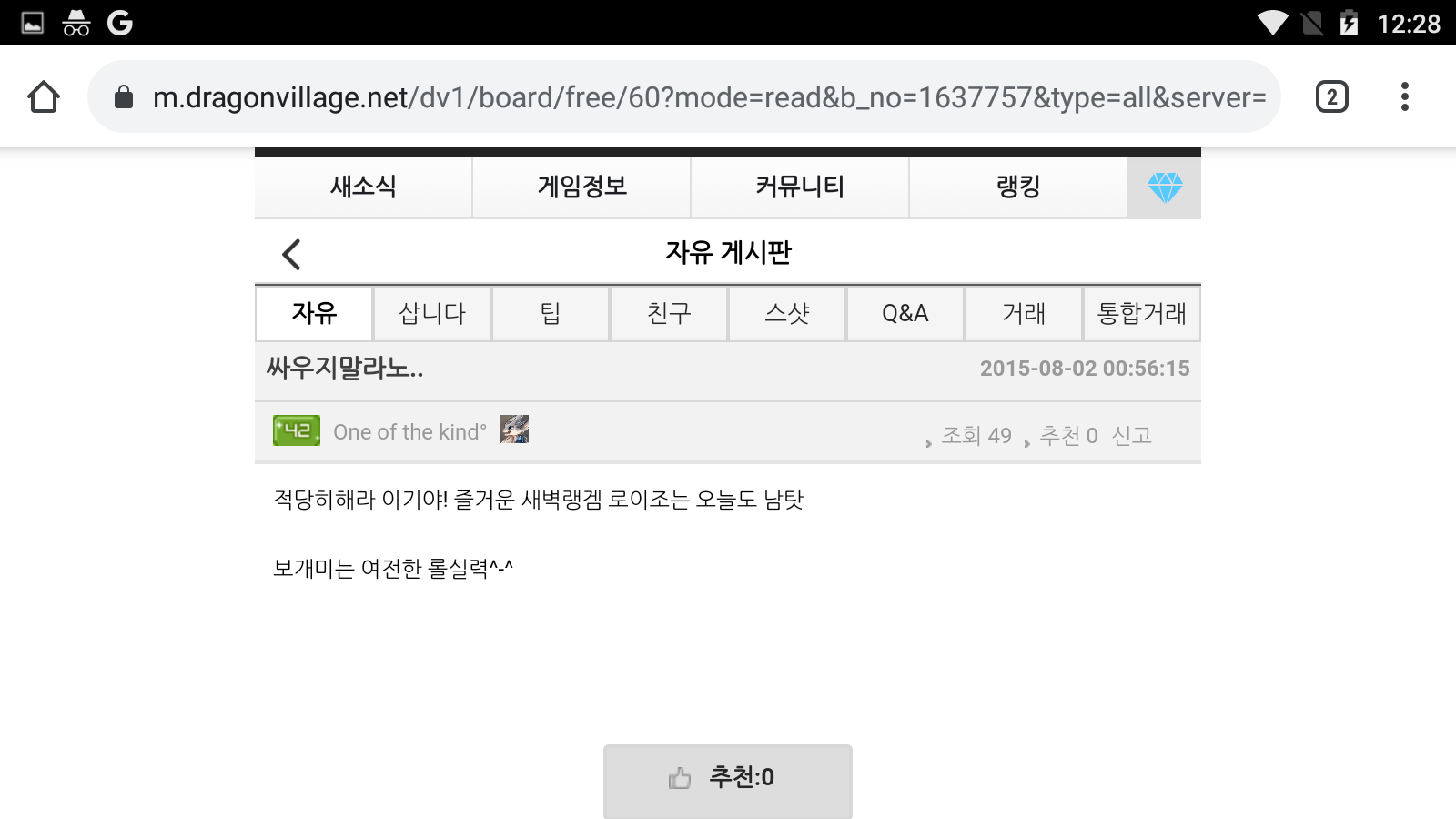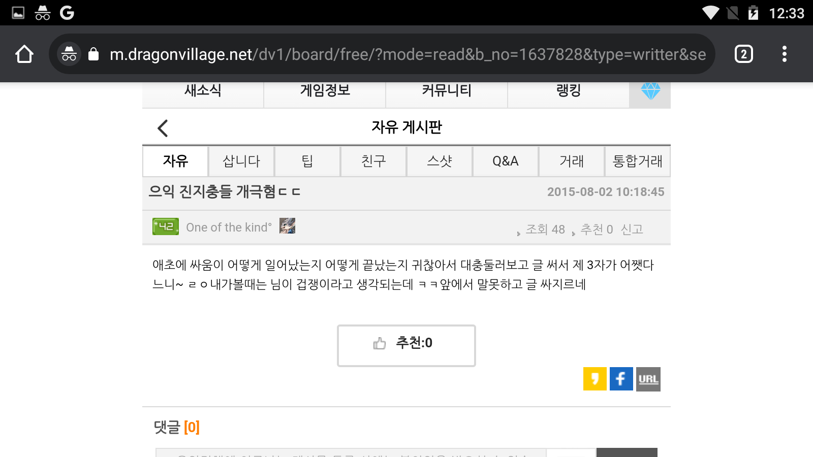 커뮤니티 > 스크린샷