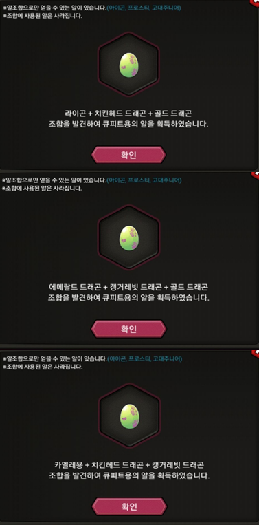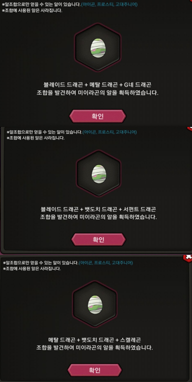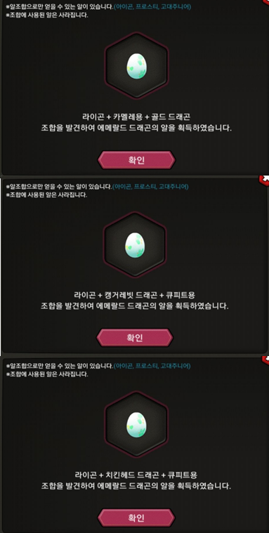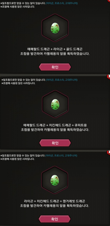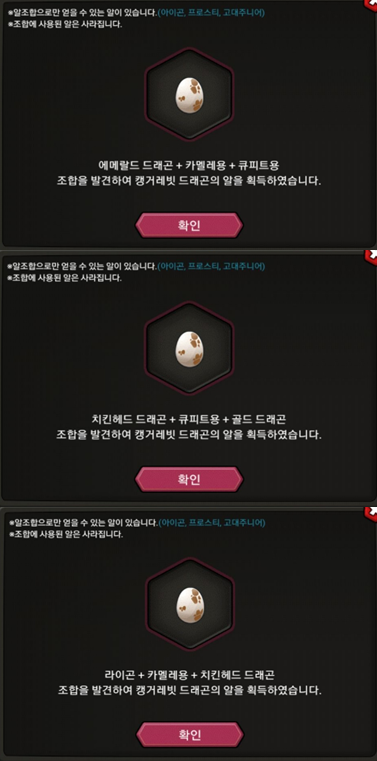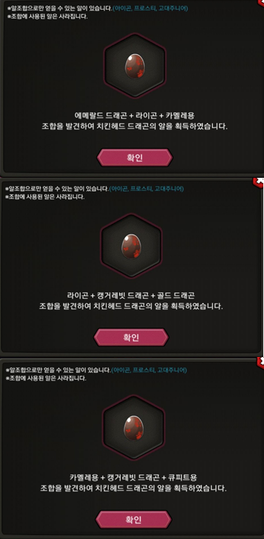 선택해서 해당 드래곤의 알을 얻을 수 있습니다.