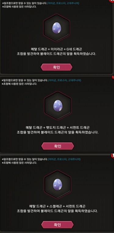 오늘은 빛 또는 어둠속성 드래곤의 알 조합법 을 공개합니다.(총 14종류의 드래곤)