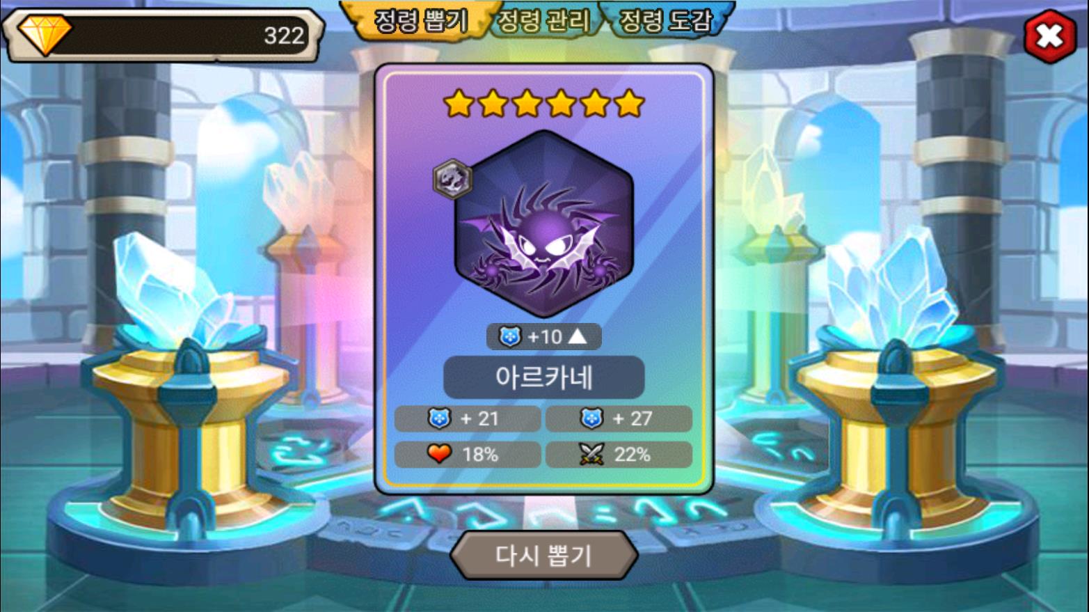 주간 미션으로 얻은 정령 뽑기권에서 나온 6성 정령