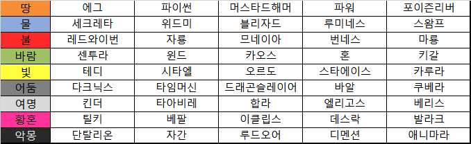 속성 당 5마리씩 깔끔하게 채워진게 보기 좋네요.