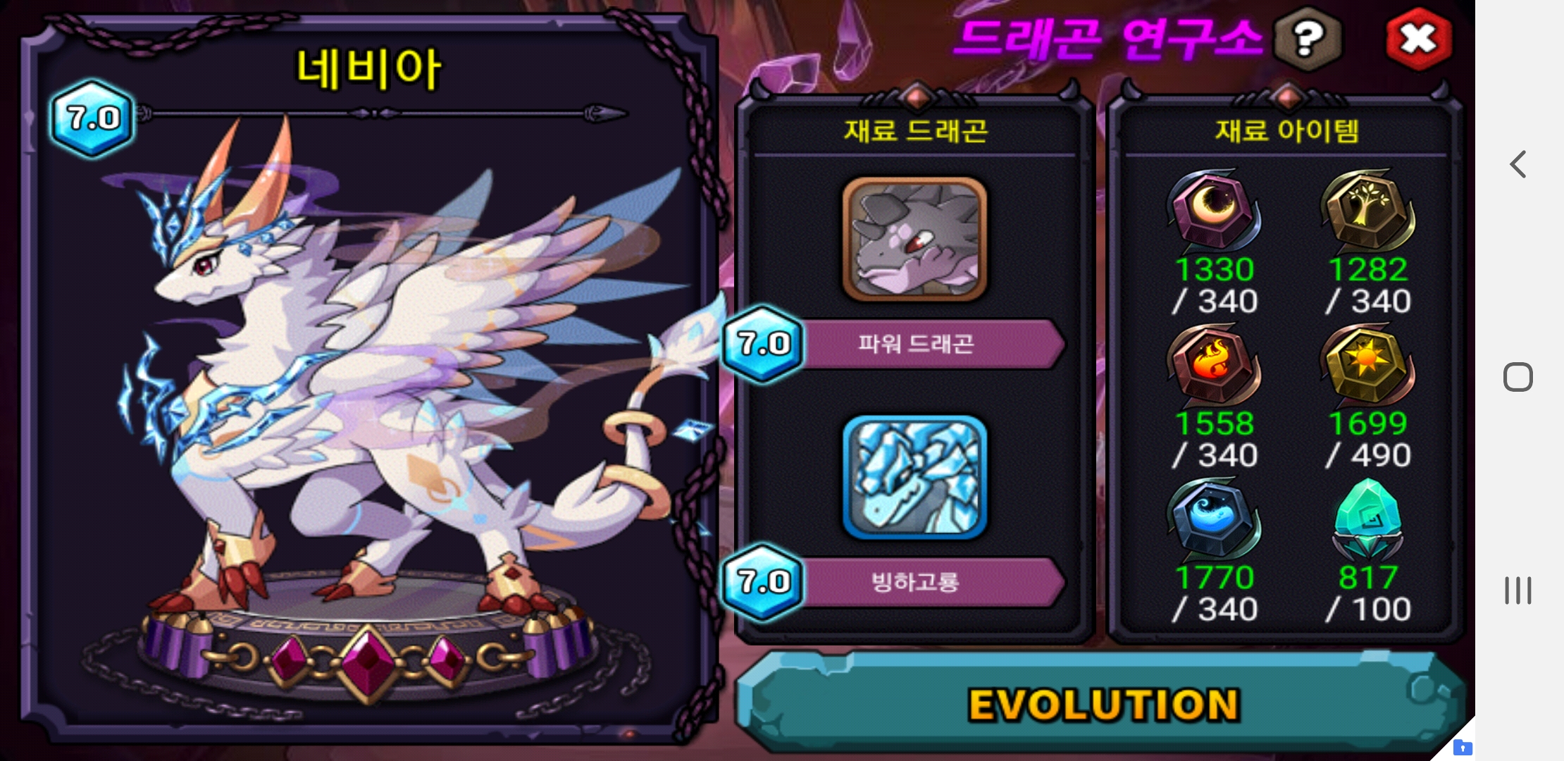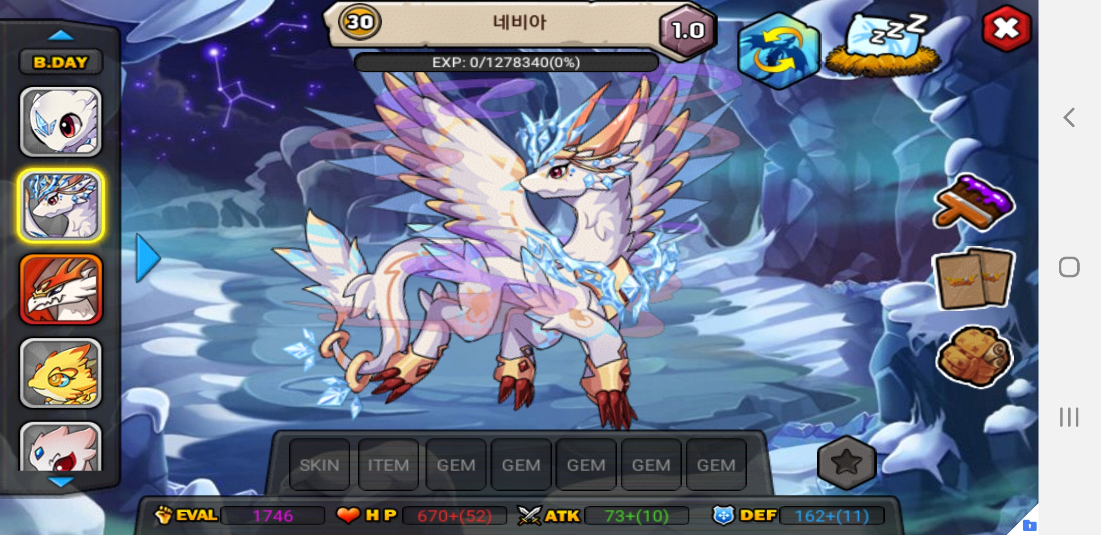네비아 한마리만 더 구하면 해치~강림,각성까지 모든 단계 동굴에 두기 가능하네요!