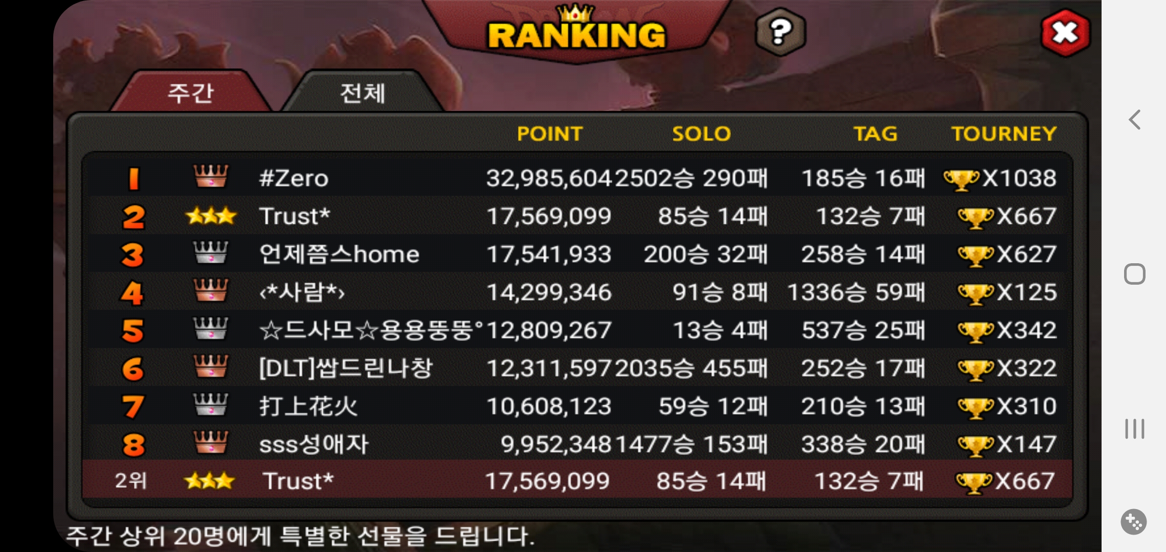 418주차 6위 달성!