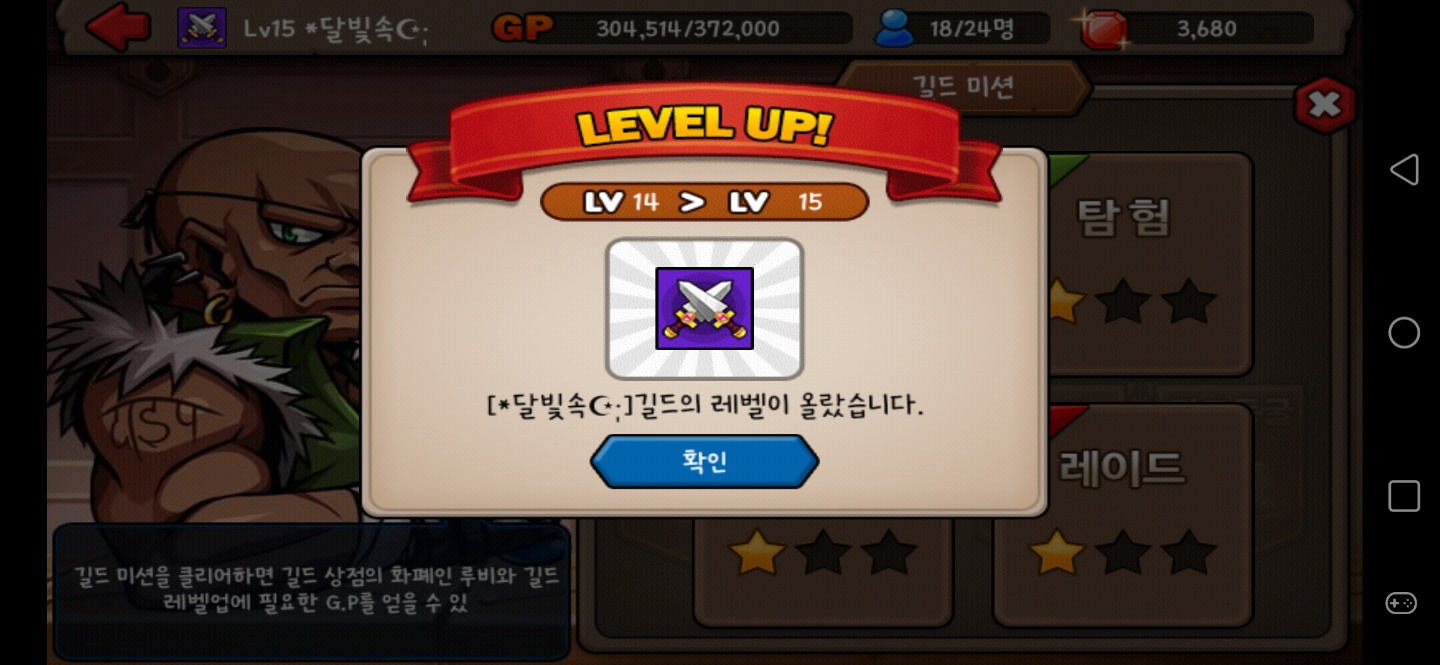 달빛속 길드가 드디어 15렙을 달성했습니다^0^