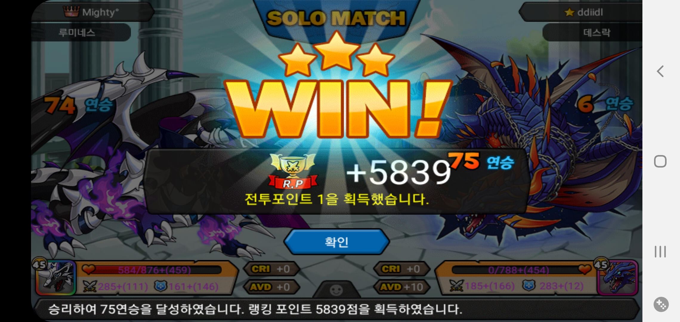드디어 오늘 루미네스 강림이 75연승+로 갱신하는군요..