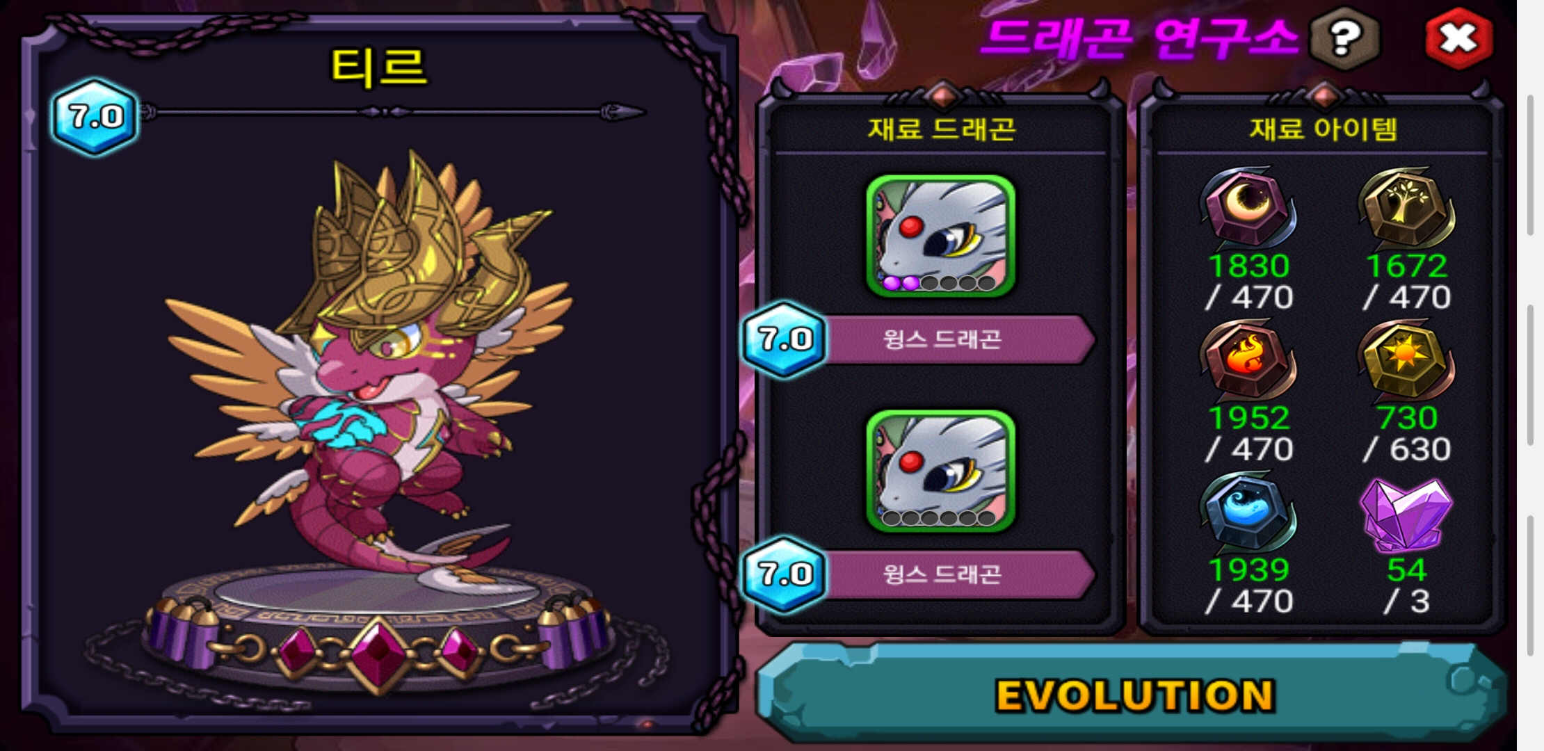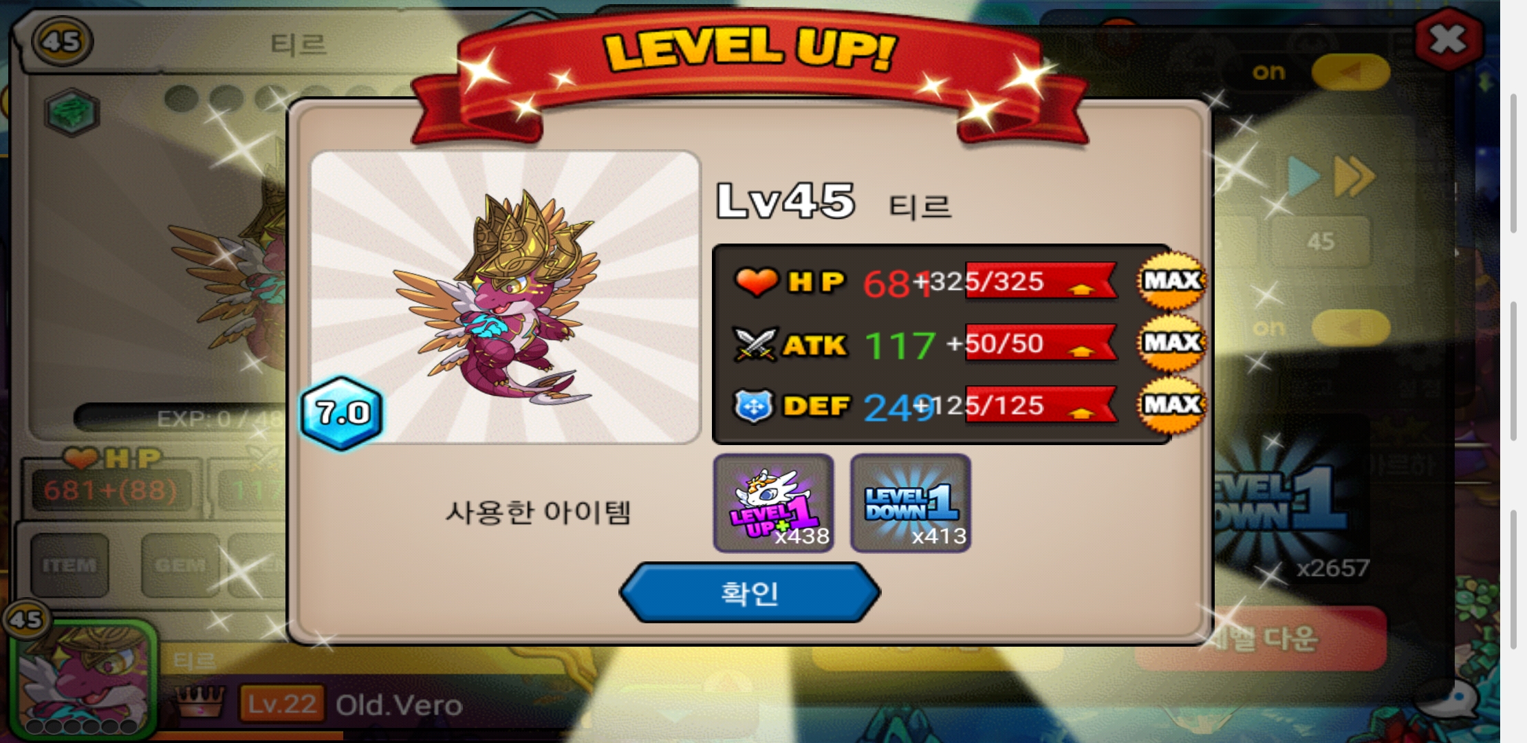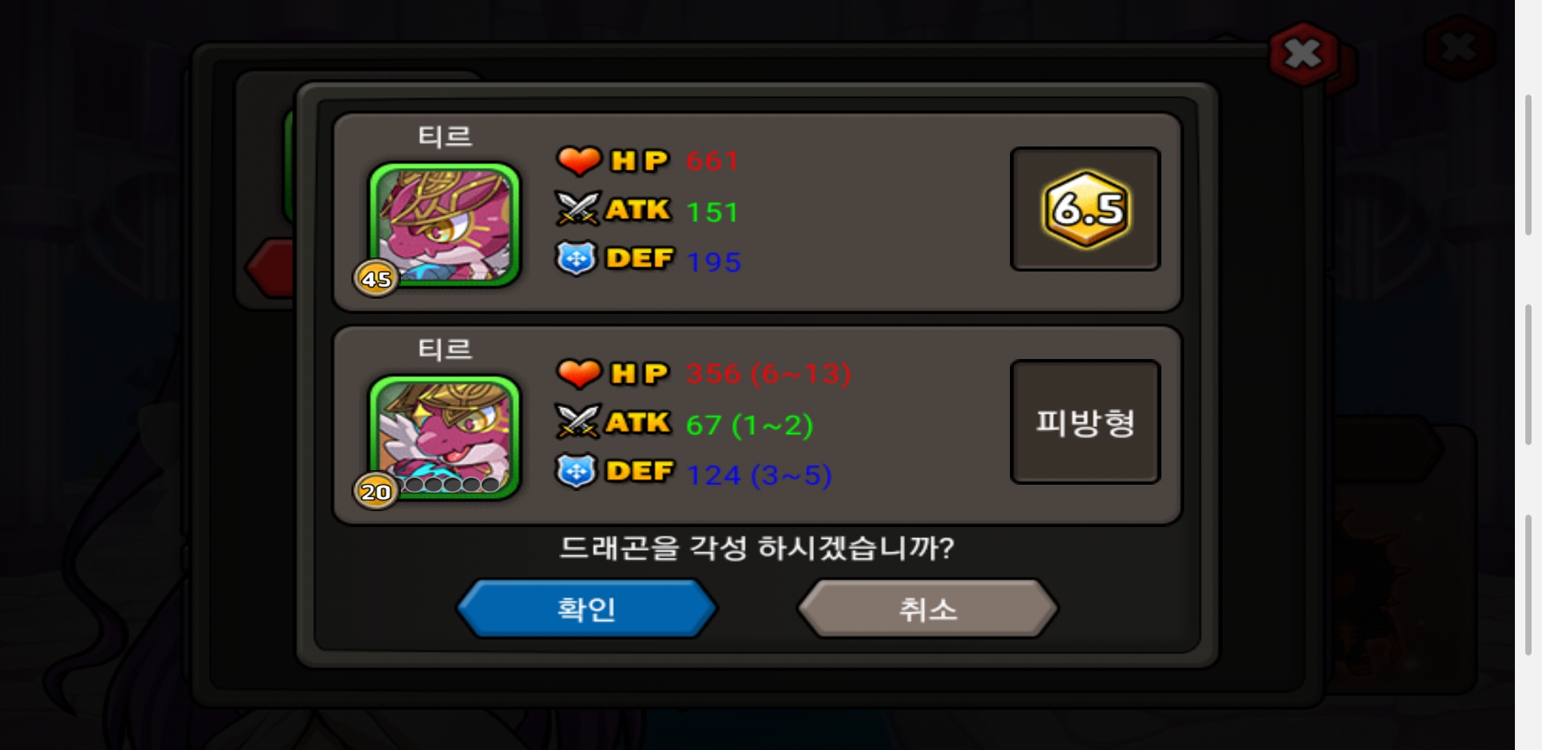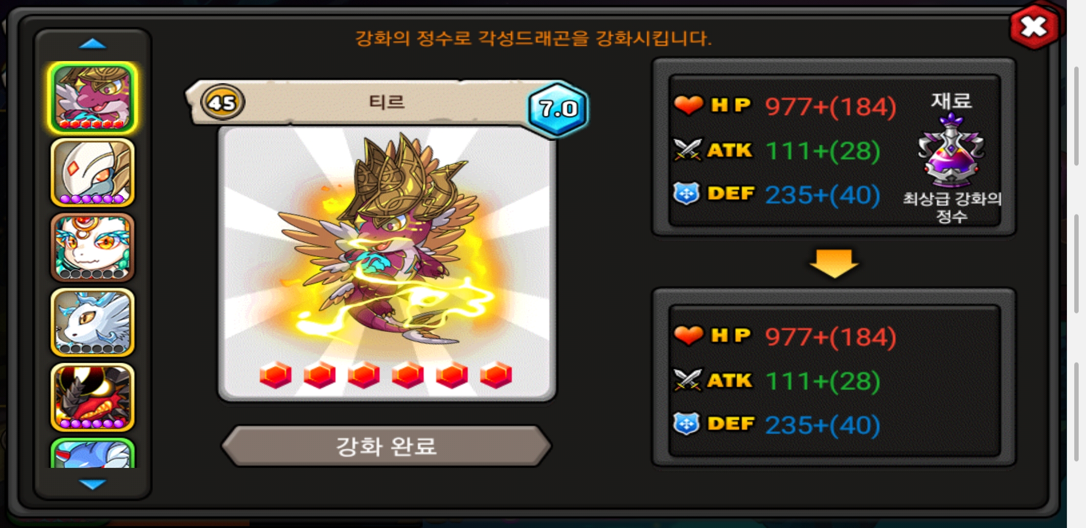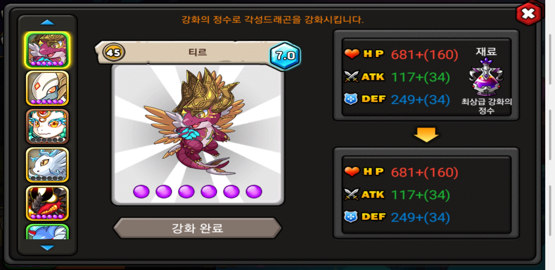 개인적으로 마음에 드는 디자인의 용이 나와 두 단계 모두 육성했네요.