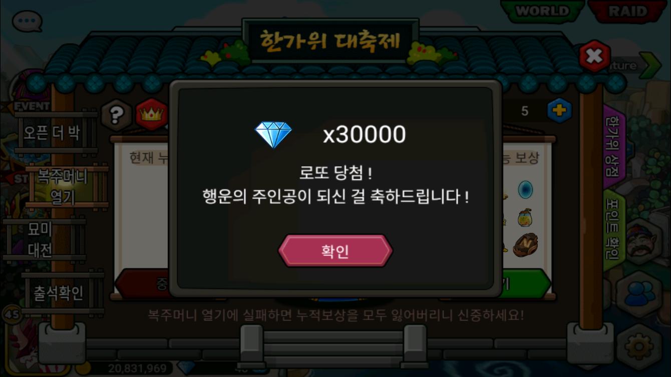 추억짤) 18년도 추석이벤 때 뽑은 30000다야