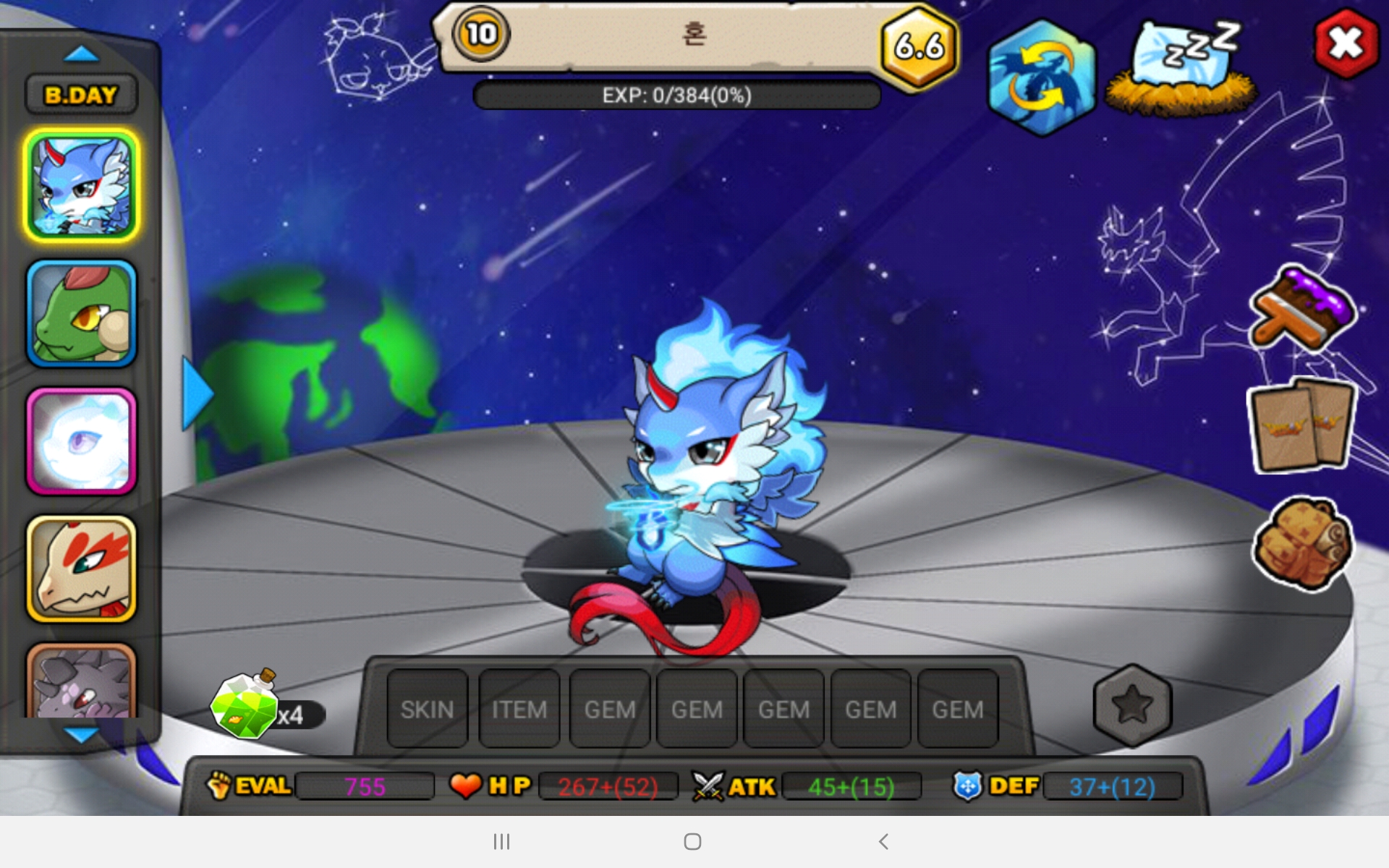 혼 10렙(캡업 67개 사용.....
