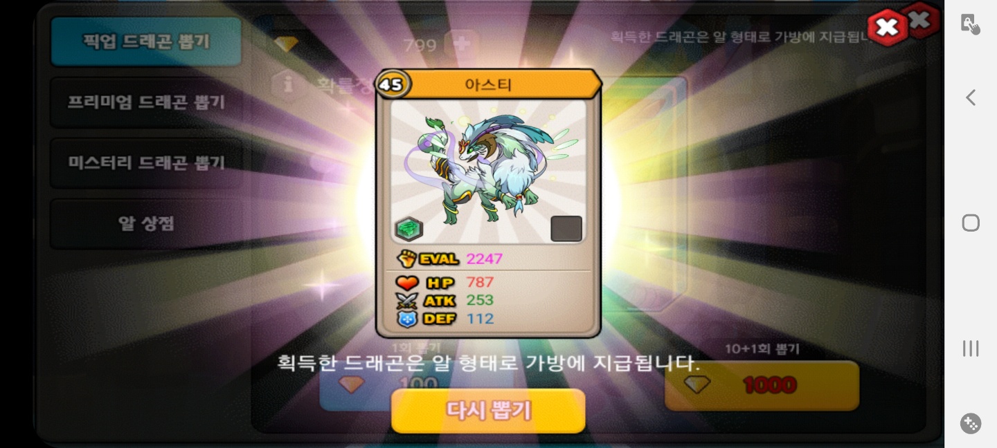 오늘 출석 보상 프리미엄 뽑기에서 나왔는데....