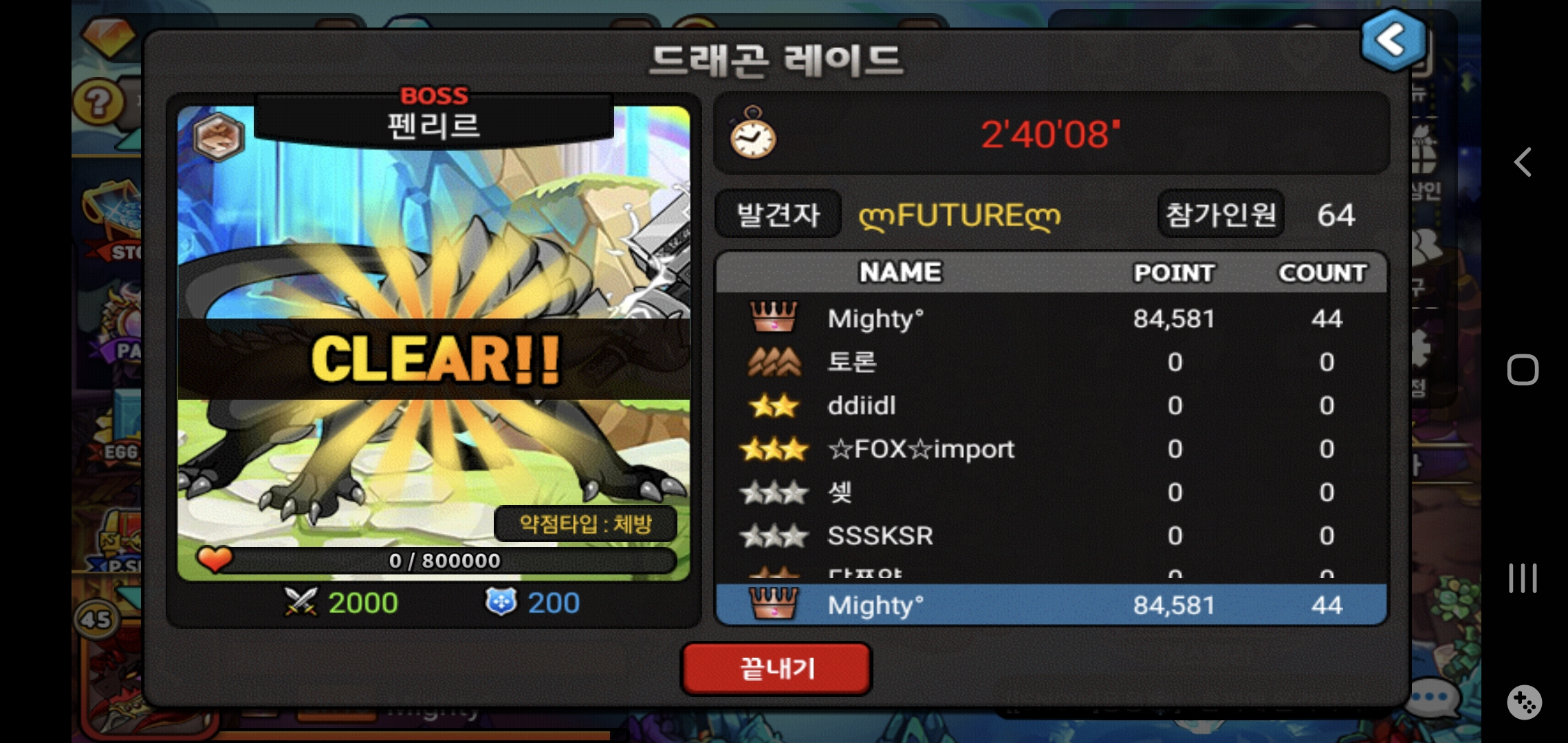 저는 정령 상태가 개판이라서 44번 돈 끝에 겨우 클리어하네요..