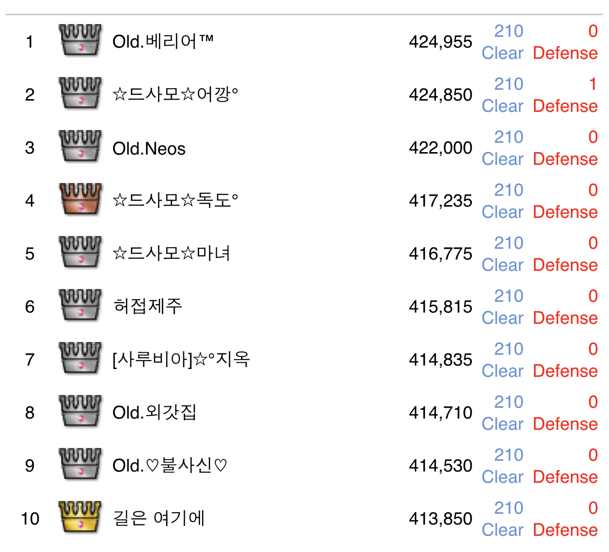 개인최고등수기록