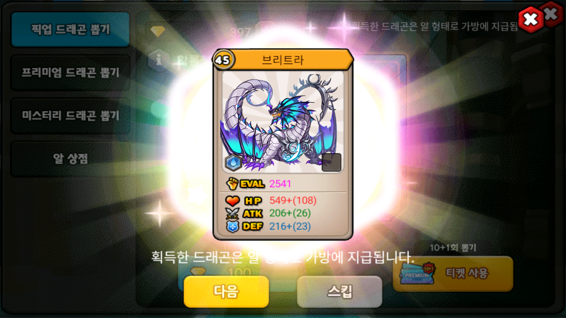 드래곤티켓나와서 카르나나 카루라 생각하면서 깠는데 또 브트네요 3강림이나해서 태그나 돌려야겠습니다
