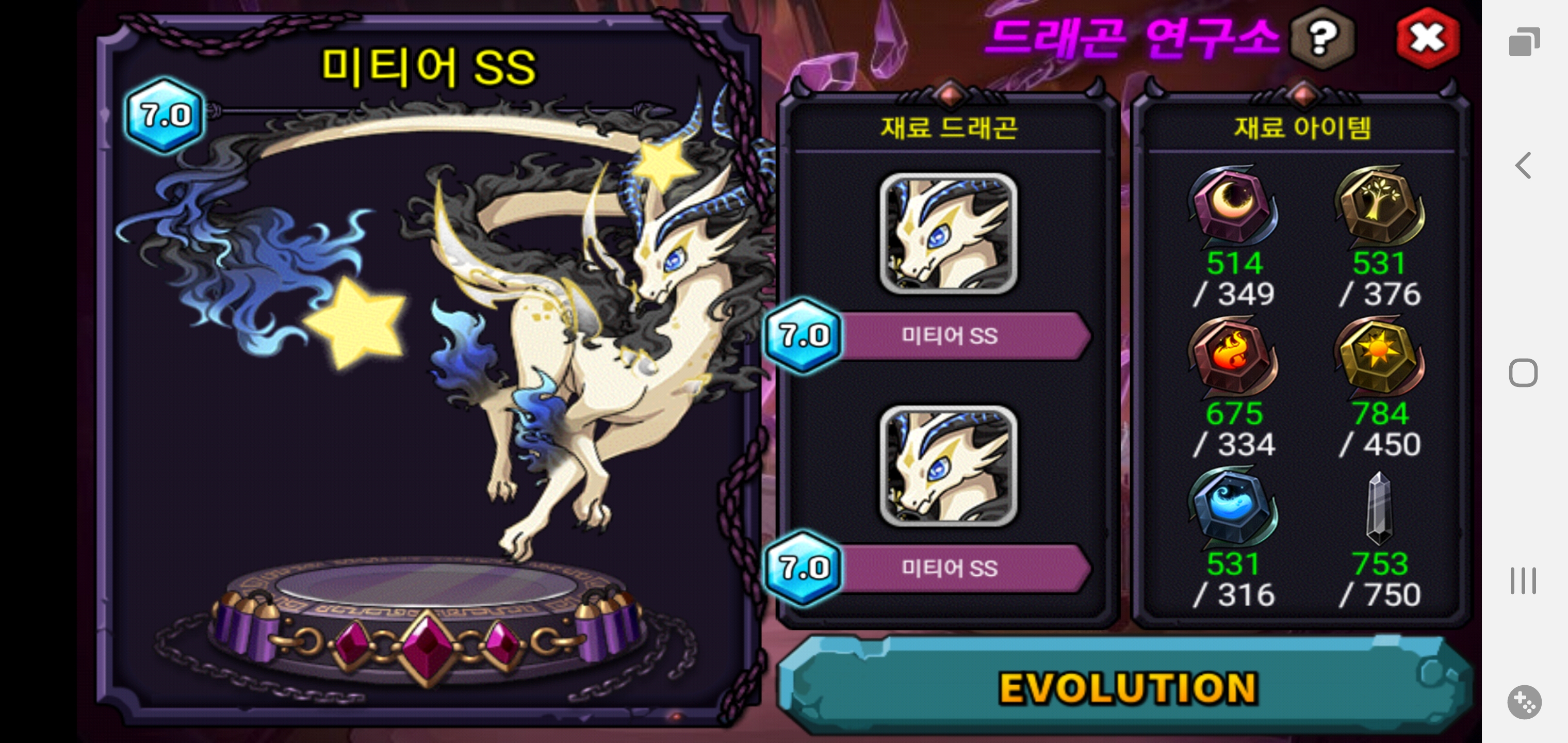 미티어는 7.0기준 이 정도 정수가 필요하네요~~~