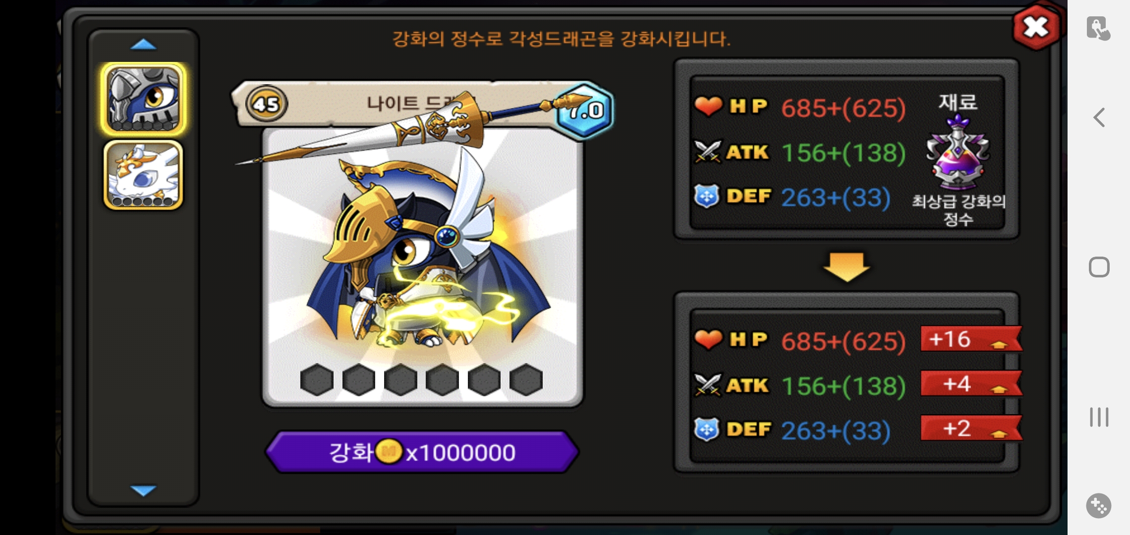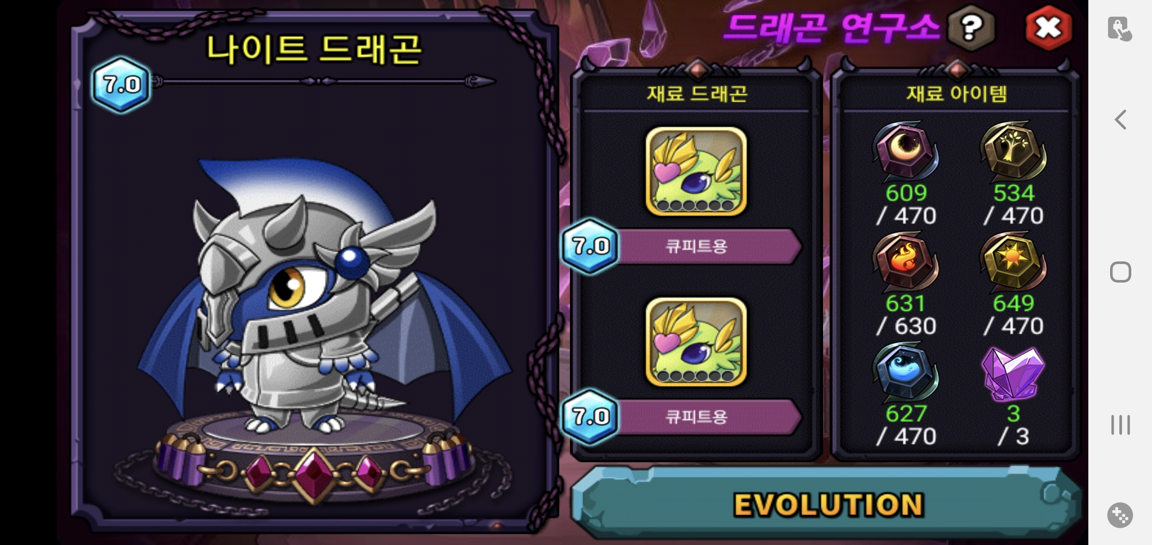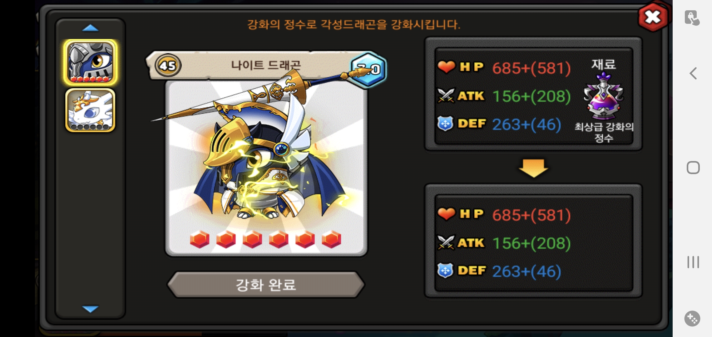 마지막 남은 진각 재료인 큐피트용 각성 7.0 20렙 10분컷 하자마자 바로 나이트 드래곤 진각성 만들고 골드 꾸역꾸역 끌여들여서 풀진각까지도 바로 만들었네요 ㅎㅎ
