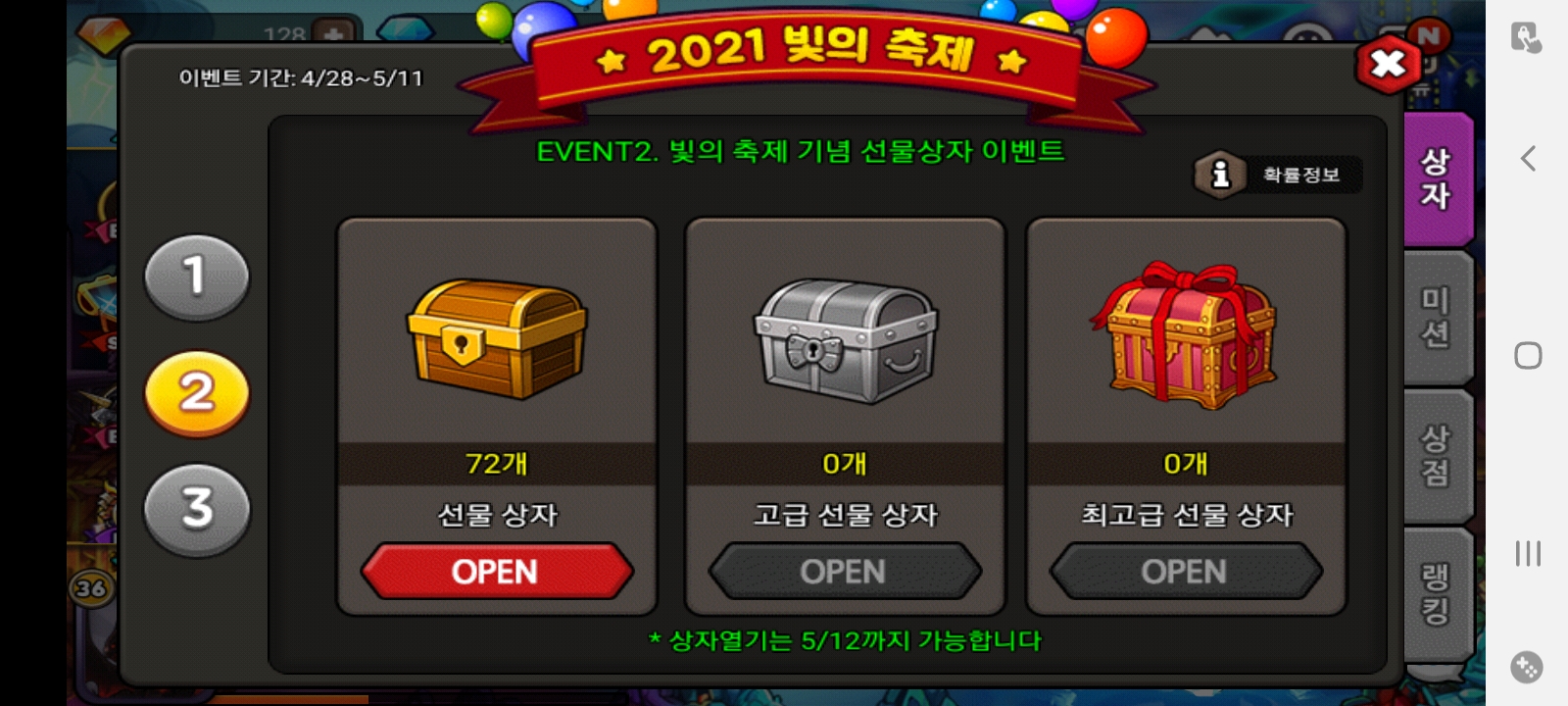 이번에 1.5 현질하고 4일간 13개씩 모으면서 72개 깡