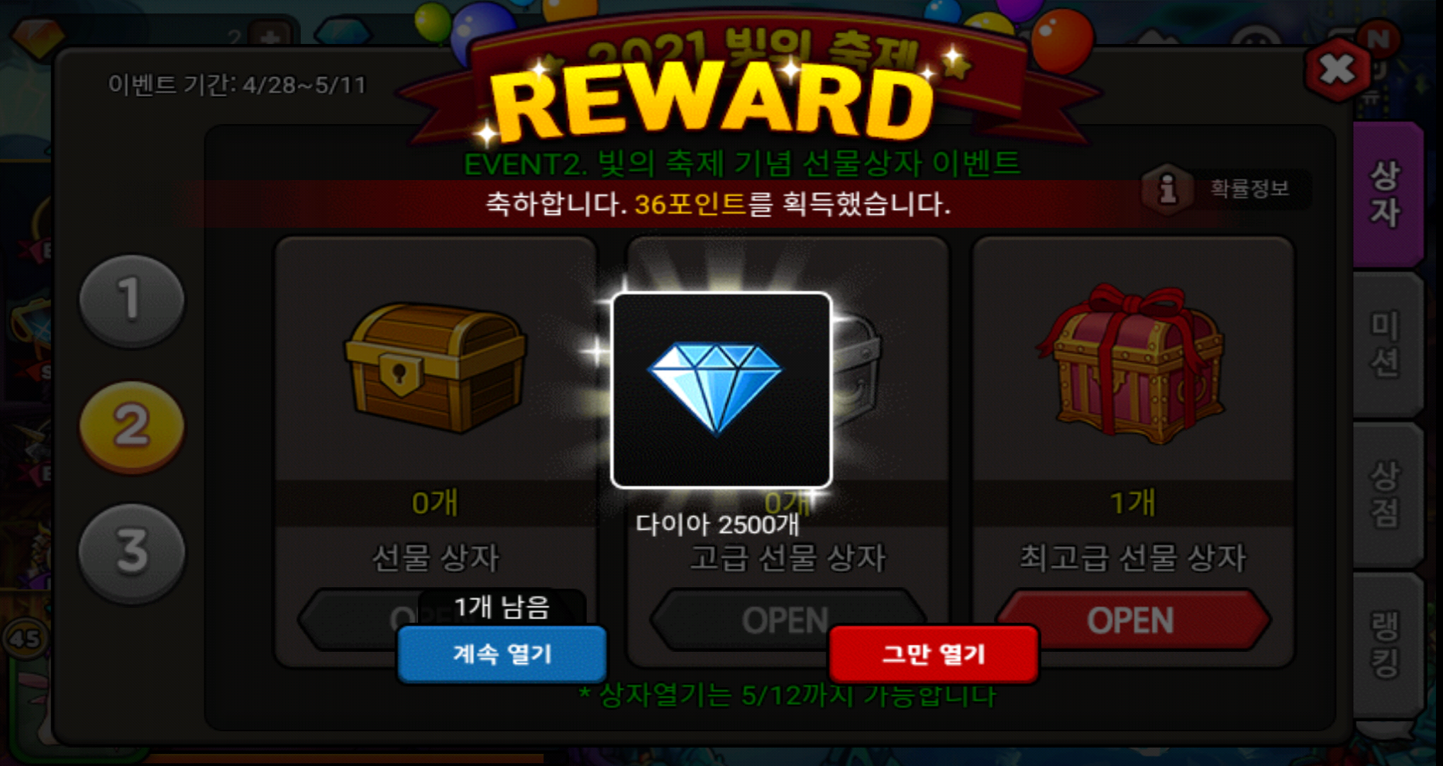 2번째 2500 다이아네요. 이번엔 안쓰고 그냥 묵혀둘게요.